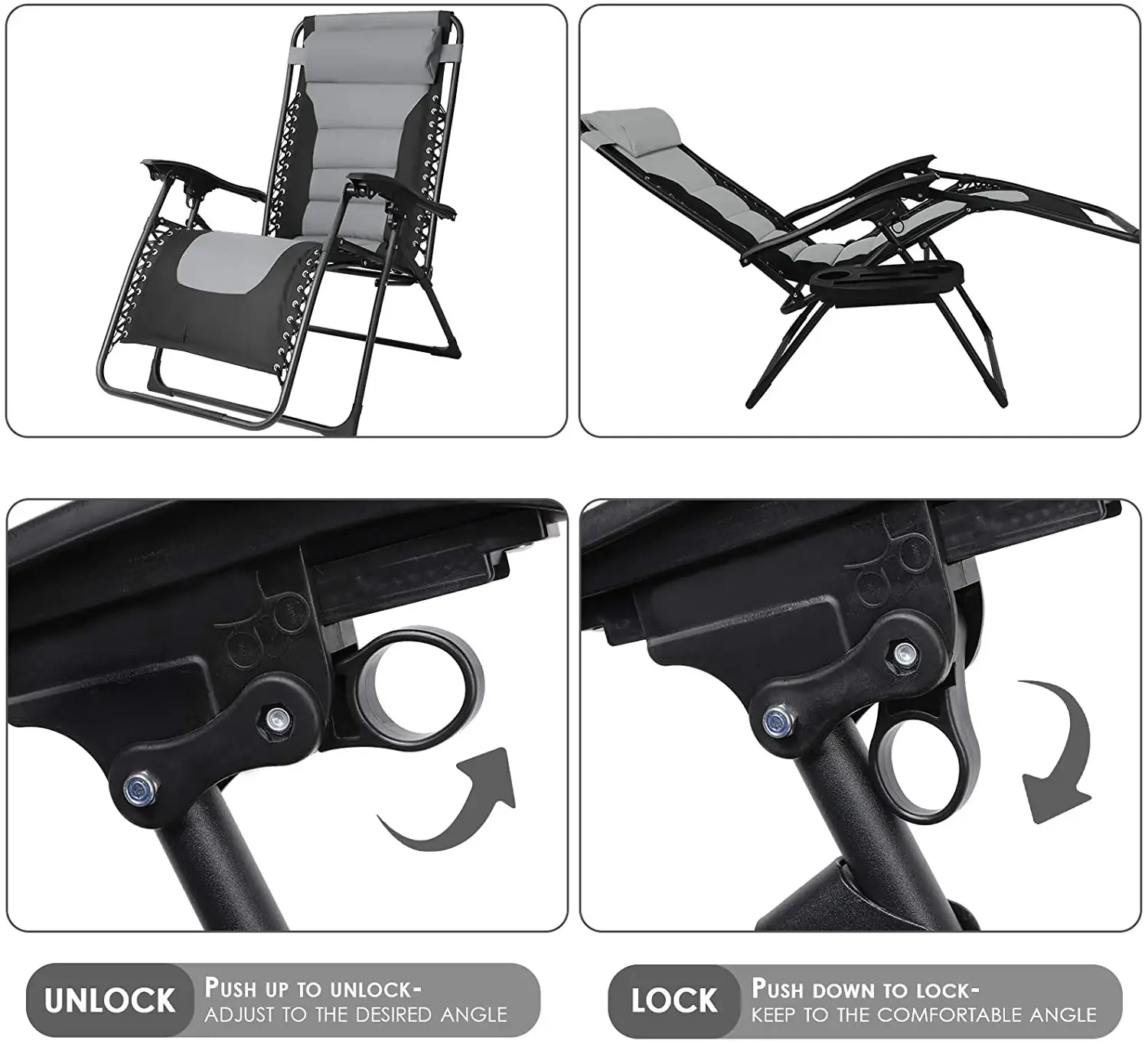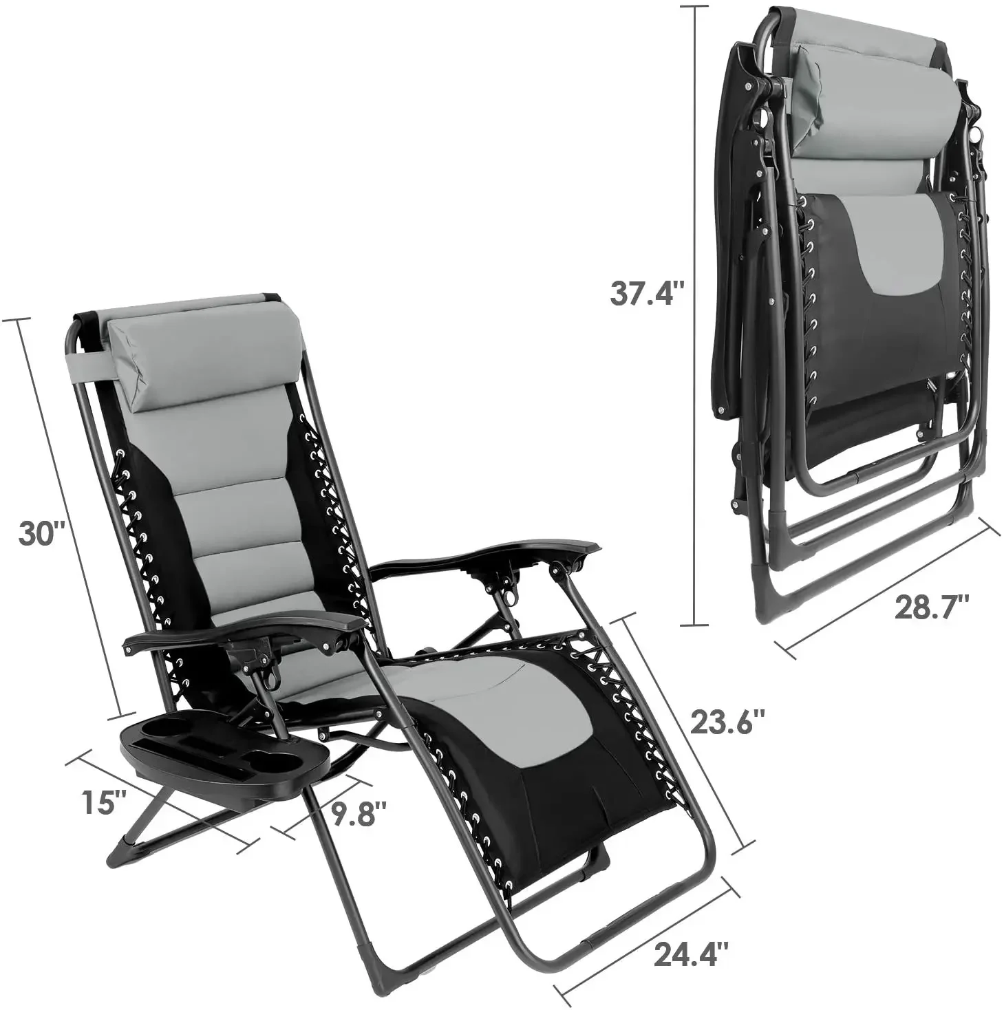 ã€MULTIFUNCTIONAL USE】The multifunctional deck chair without gravity has a removable cup holder with an extra space for a tablet, mobile phone, drinks or book. It is very suitable for a variety of occasions at home, beaches, and gardens, including patio relaxation, camping, hiking, fishing, and other outdoor activities.