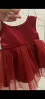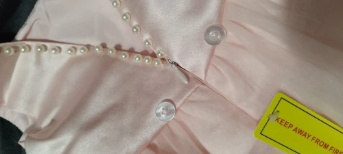 The fabric is super pretty, just like the picture, it arrived quickly, it is a thin pink one and has the tul at the bottom, my baby is 11 months old but I ordered size 6/9 and it fits perfectly, the sizes are always a little bigger just like the shoes, to keep in mind.