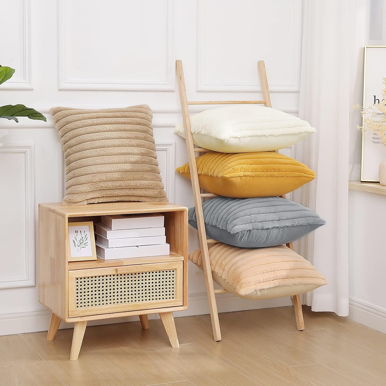 Super Soft: Crafted from velvet and faux rabbit fur, our cream white pillow covers offer a fluffy touch and a soft cozy feel while remaining gentle on the skin