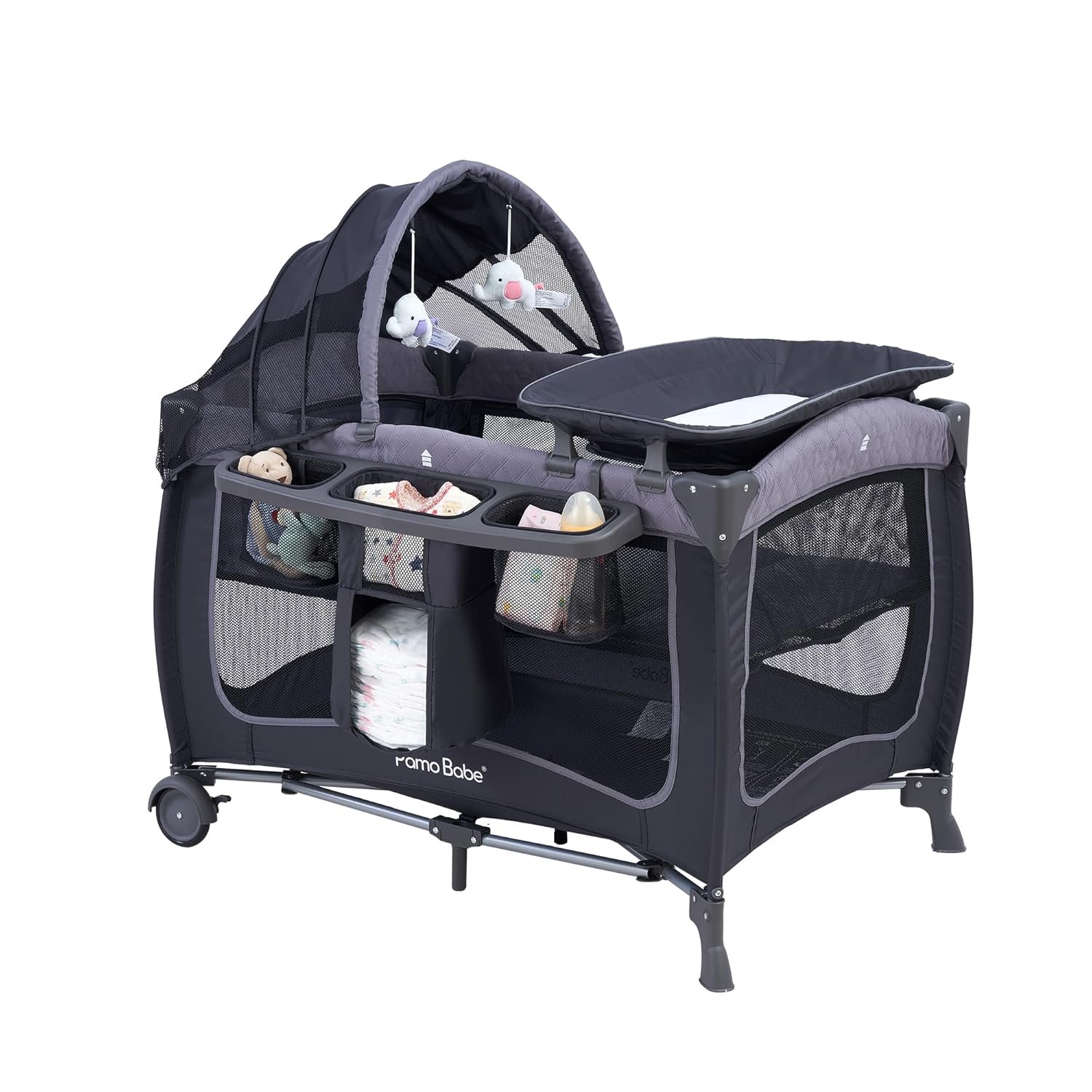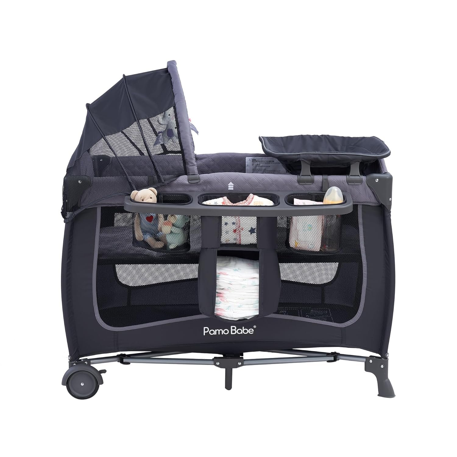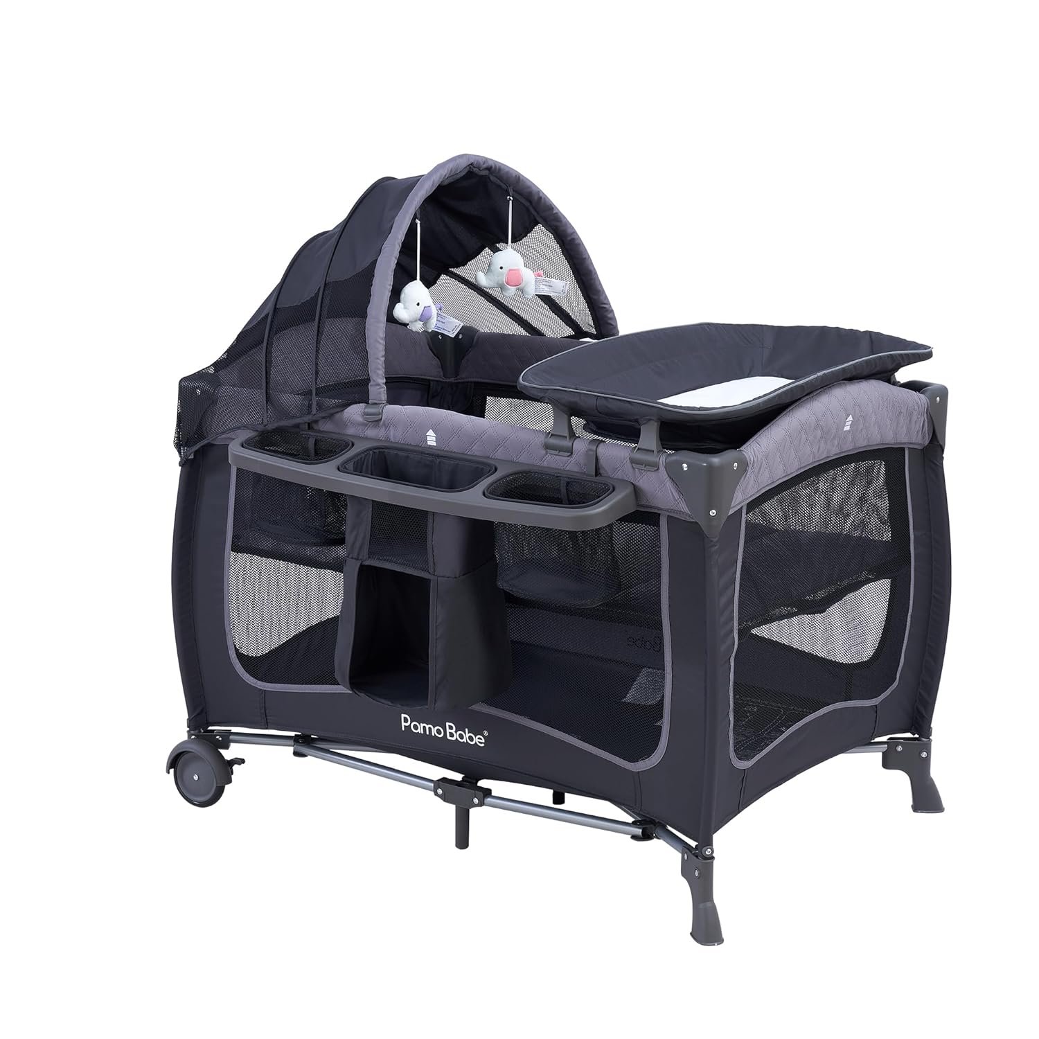 Pamo Babe Baby Playard with Canopy, Portable Crib with Changing Table