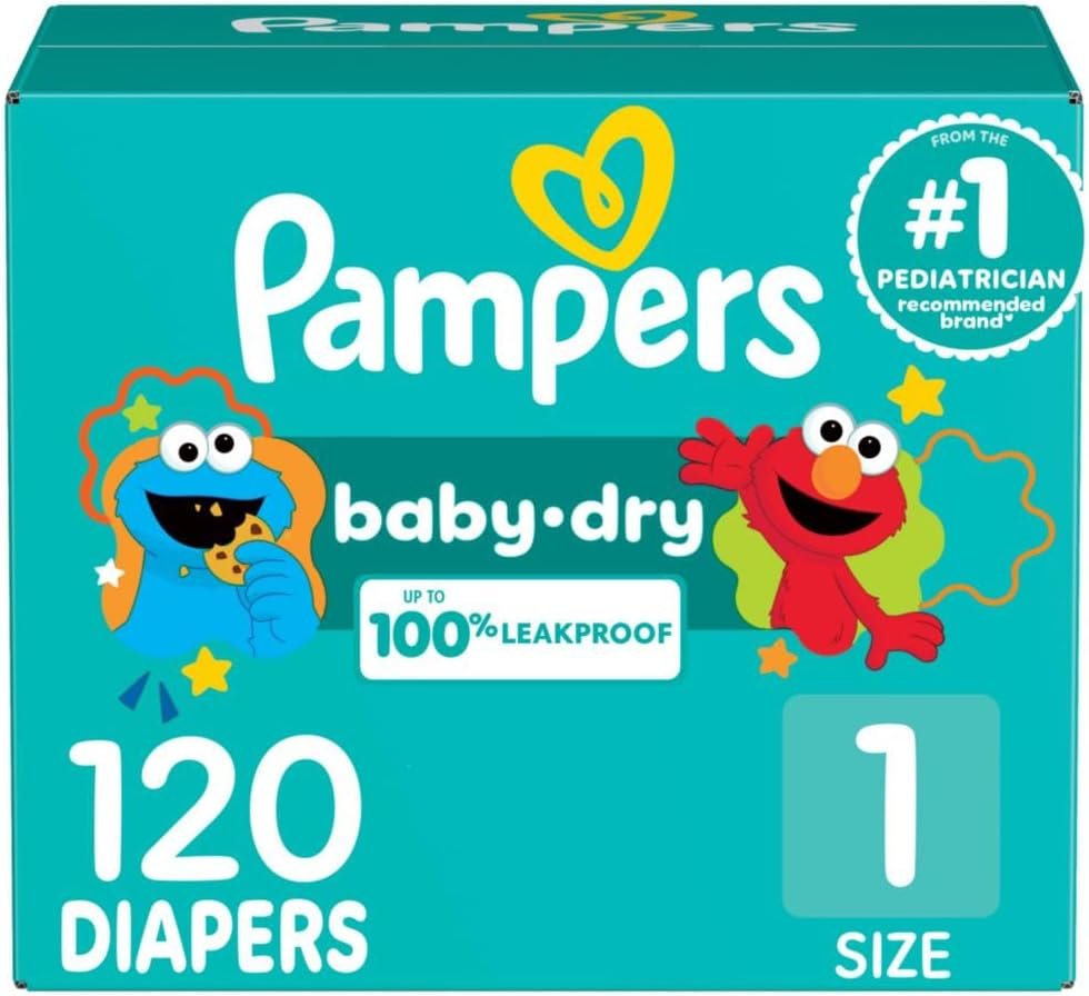 Pampers Diapers – Baby Dry – Size 1, 120 Count, Absorbent Disposable Infant Diaper (Packaging May Vary)