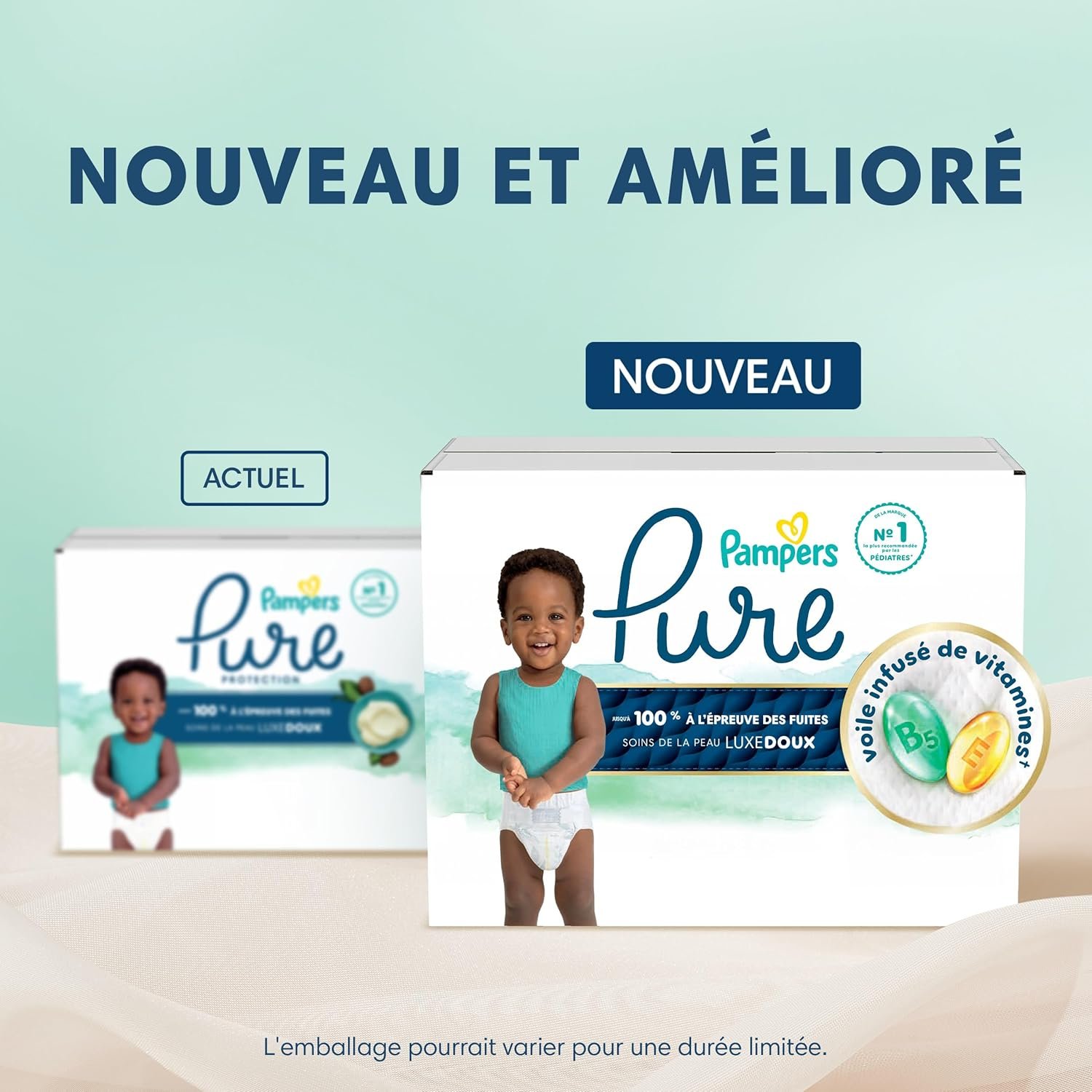 Your search is over. Everything you’ve been waiting for in a diaper, you’ll find with Pampers Pure. Our most premium protection for your newborn. MADE FOR SKIN HEALTH We’ve carefully crafted Pampers Pure diapers with plant-based ingredients and a shea butter infused liner that moisturizes to help nourish baby’s skin. Pampers Pure Protection diapers are irresistibly soft and breathable. Now with NEW & IMPROVED softness! 2x softer than Honest diapers to help keep your baby comfy. Our luxury diapers are approved by the Skin Health Alliance. Use with Pampers Pure Aqua wipes to help protect baby’s skin. LEAKAGE PROTECTION Up to 100% leakproof plant-based skin protection*. Pampers Pure Protection features an absorbent Lockaway Core that stays 2X drier** for healthy skin and a Blowout Barrier that helps prevent blowouts. PROTECTION YOU CAN TRUST The ingredients we’ve chosen to leave out are just as important. That’s why Pampers Pure Protection diapers are free of elemental chlorine, fragrance, parabens, and latex***and are hypoallergenic. All Pampers diapers are assembled in the U.S.A. Discover trusted skin protection from the #1 pediatrician recommended brand. PREMIUM DESIGN Our designer, boutique style prints make Pampers Pure just as precious as they are protecting for your baby girl or boy. *Liner enriched with plant-based, skin-soothing ingredients **vs Honest ***No natural rubber