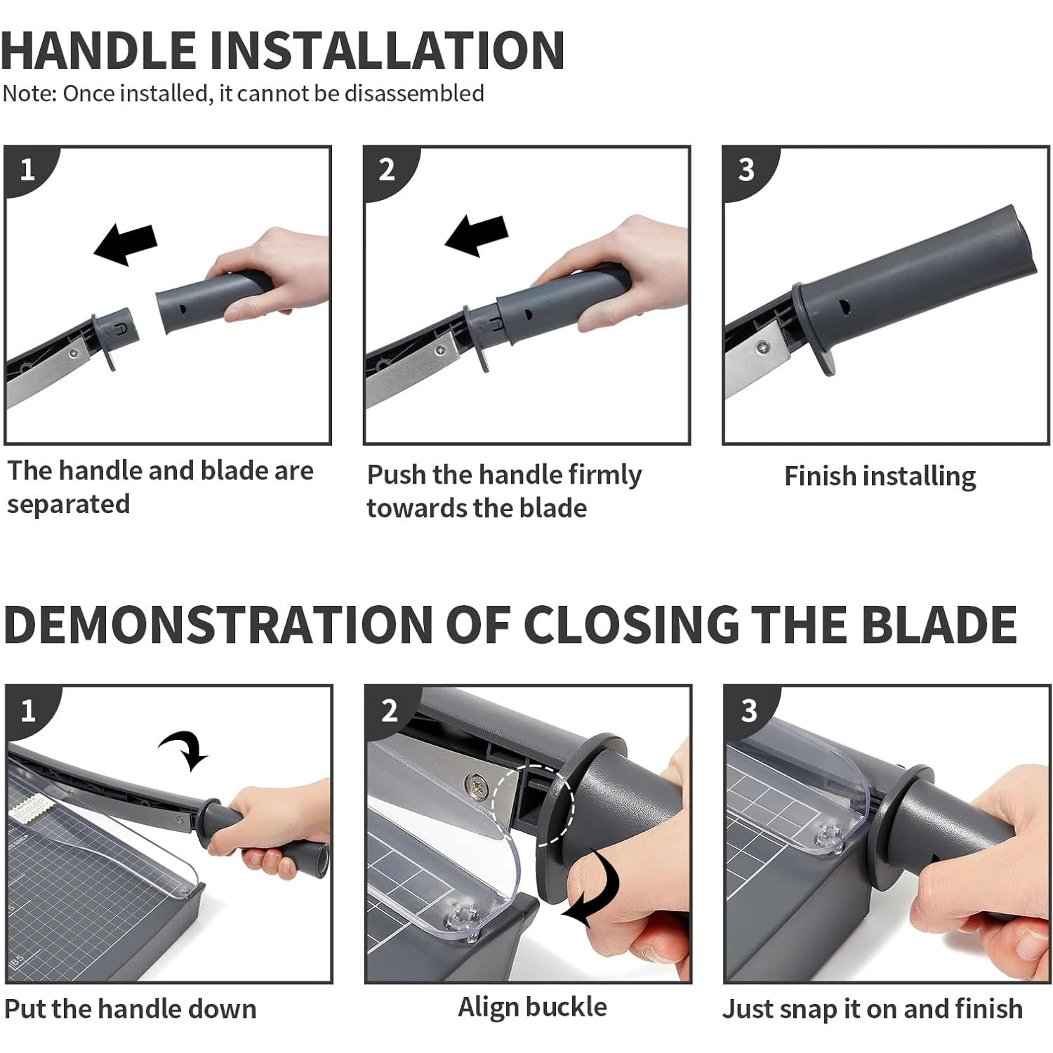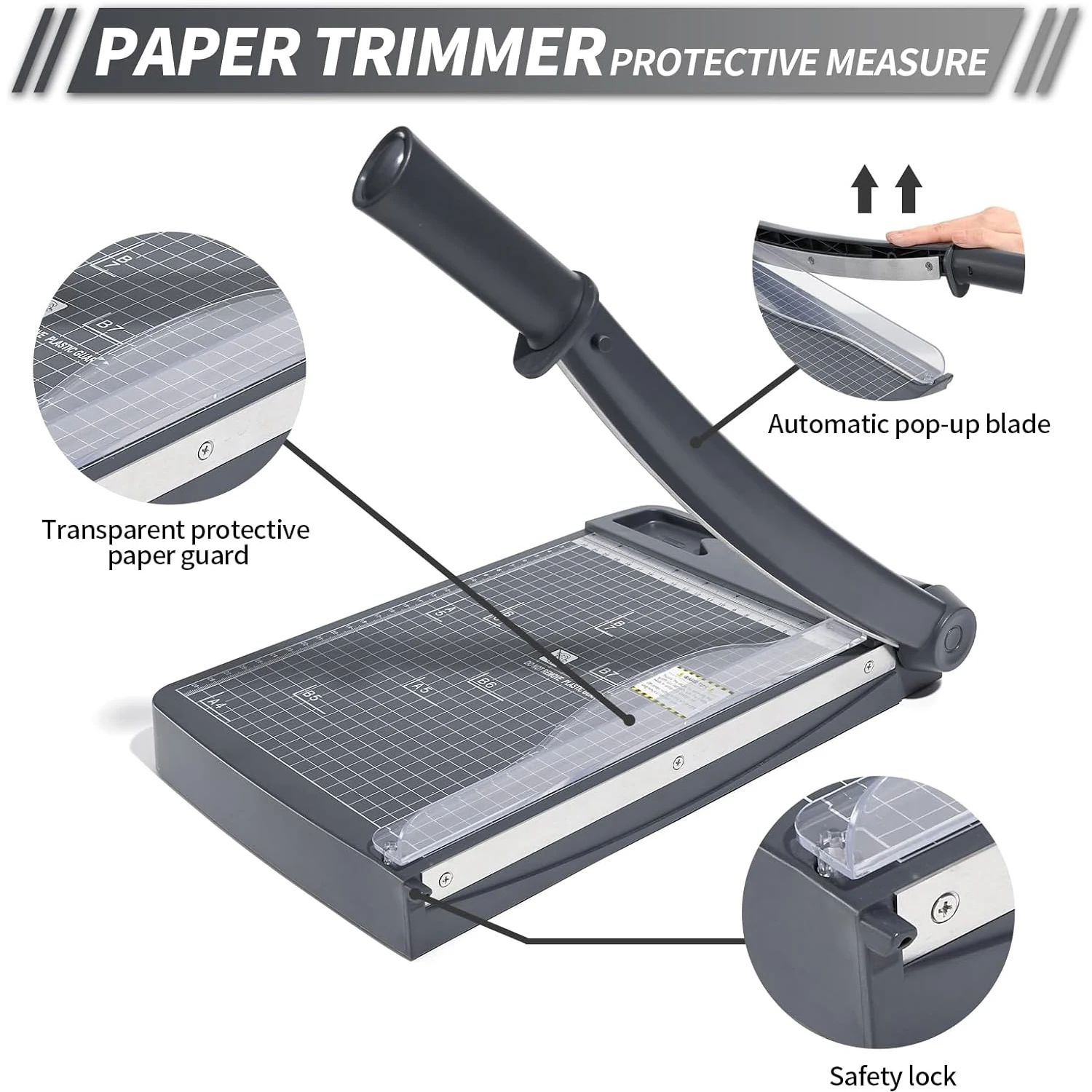 Guillotine-style metal cutting blade and pressure plate to make cutting safer. What’s more, the blade will automatic rebound after each cutting, plus safe buckle design to prevent fingers from cutting.