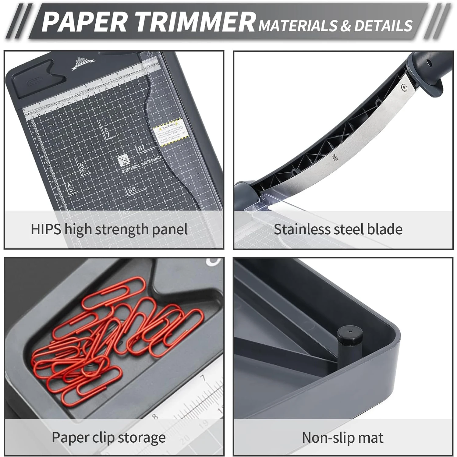 Premium sharp steel blade, can cut up to 16 sheets of A4 paper(70g) at one time, which greatly improve work efficiency.