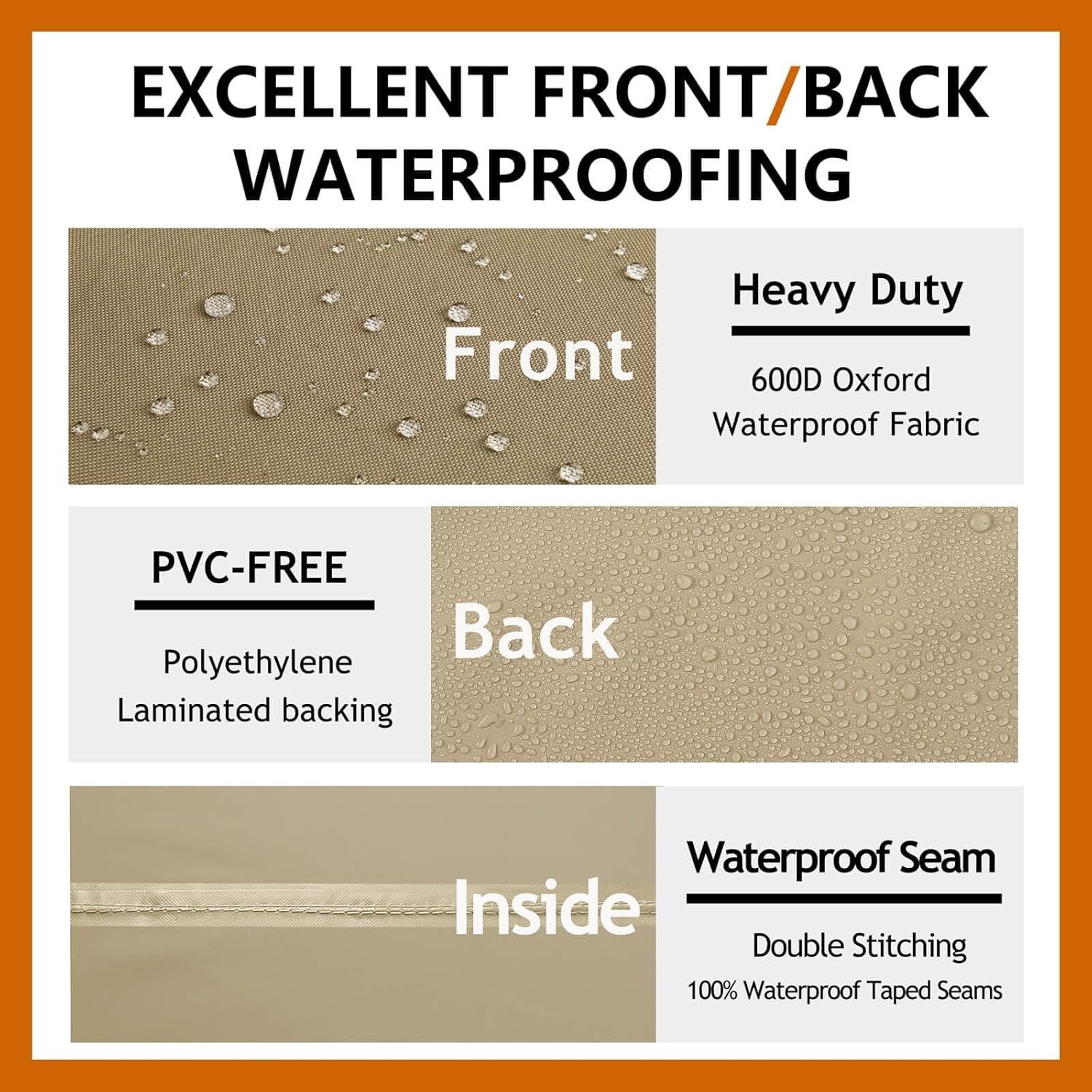 Our products are carefully designed and manufactured with durable, solid-dyed polyester fabrics with high seam strength and a waterproof thick coating for durability and all-weather use.