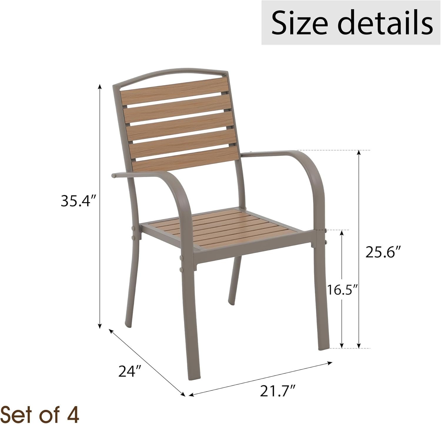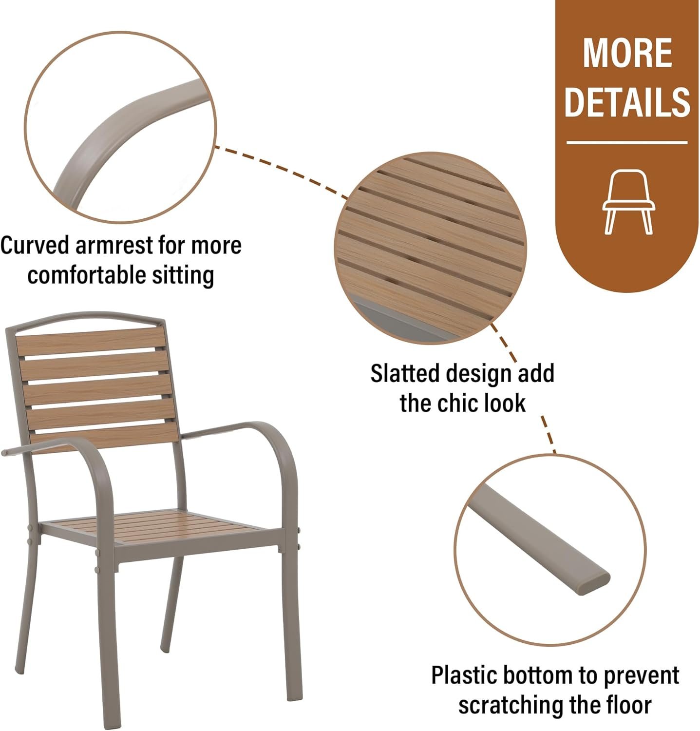 【HIGH-QUALITY MATERIALS】: i-VTIES dining chairs are made of unique materials. The frame is made of aluminum, which is strong and durable. The rest is designed using wood-plastic slats. The wood grain design adds elegance to your space and is more durable than wood.