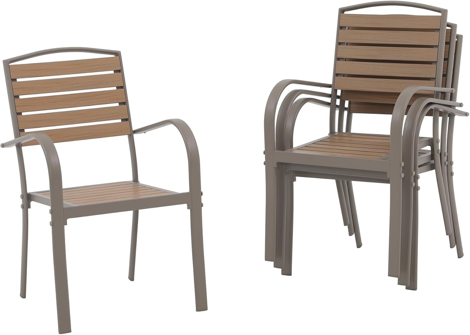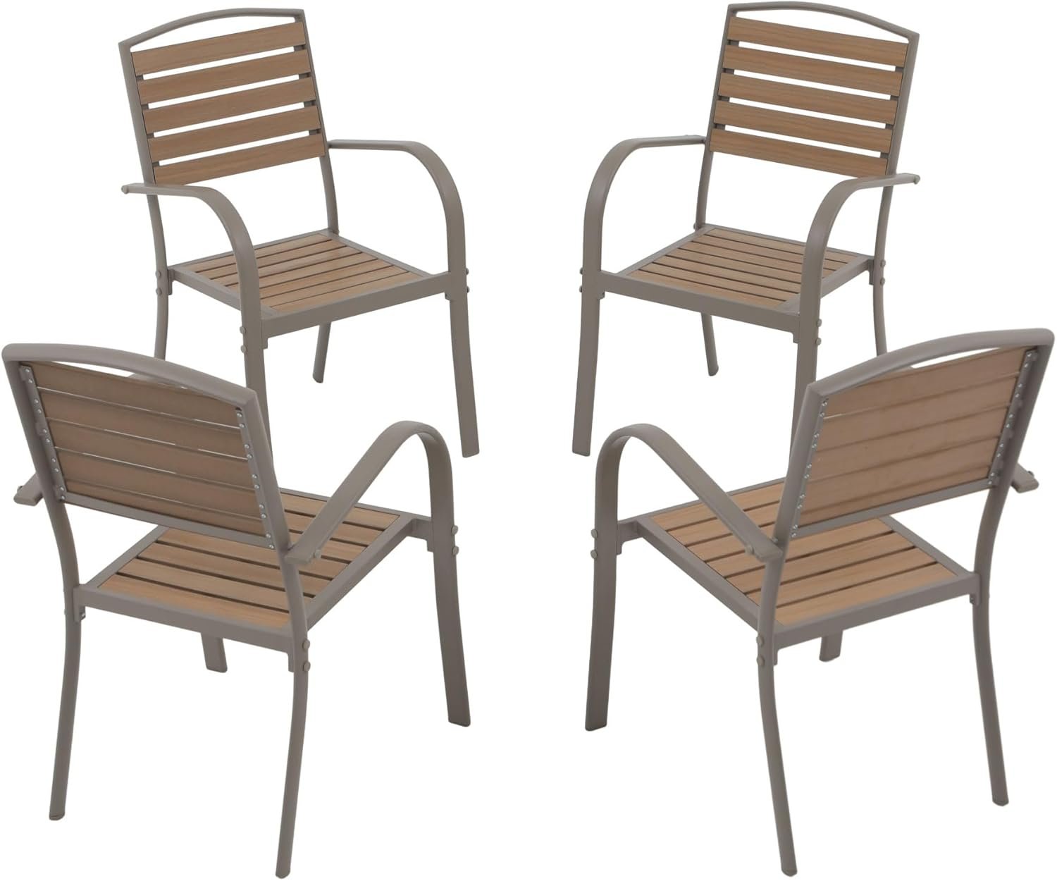 Patio Dining Chairs Set of 4,Outdoor Stackable Dining Chairs with Backrest & Armrest,Aluminum Frame Patio Furniture Chairs for Garden,Backyard,Lawn & Deck,Teak