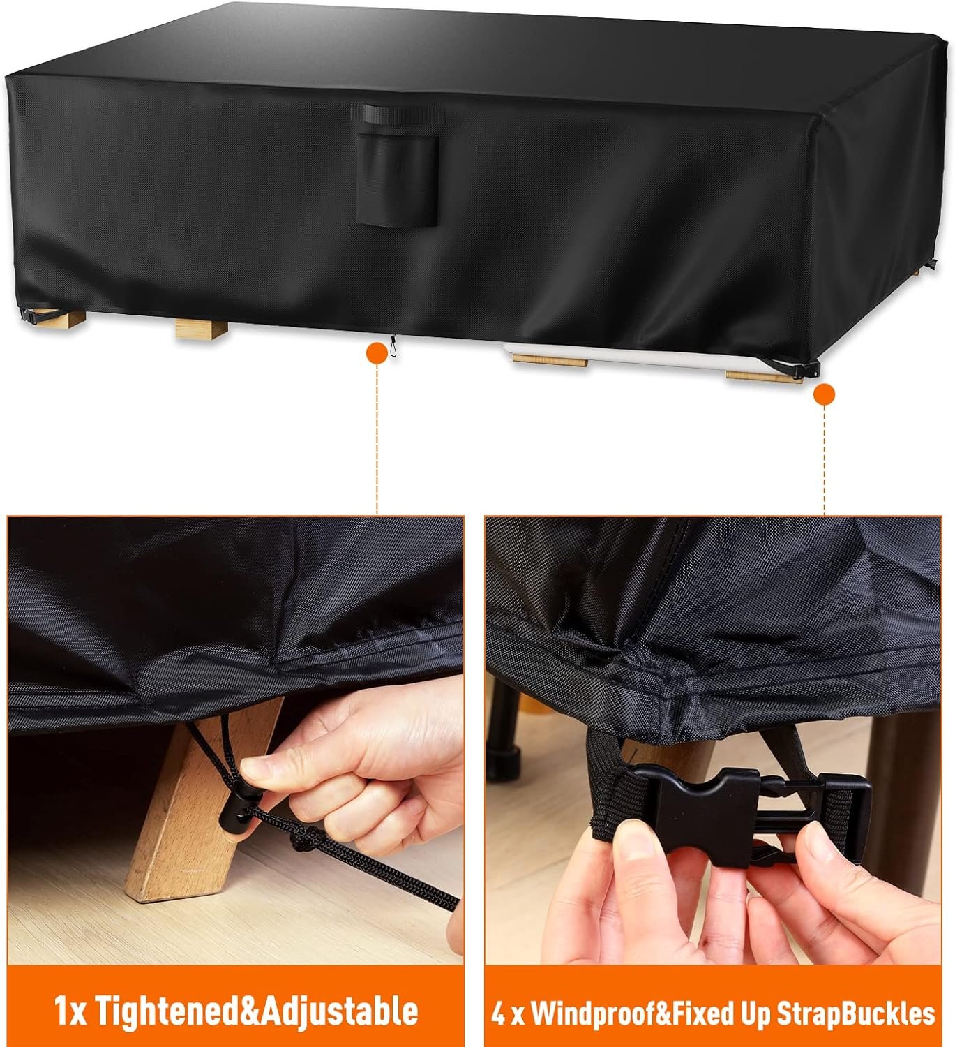 【Tear and UV Resistant】We developed a high quality patio furniture cover with 600D material strictly stitched and PU coated with waterproof tape at the seams. Keeps your furniture dry. It also protects your furniture from rain, snowstorm, dust, falling leaves, scratches.