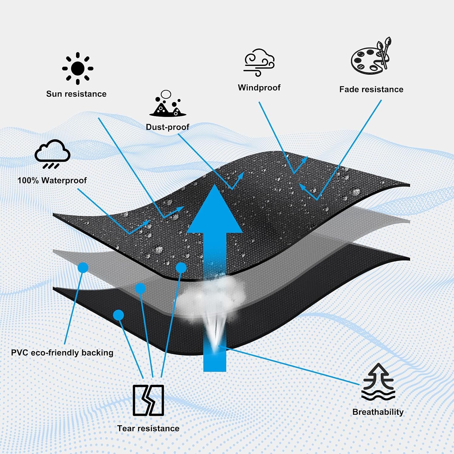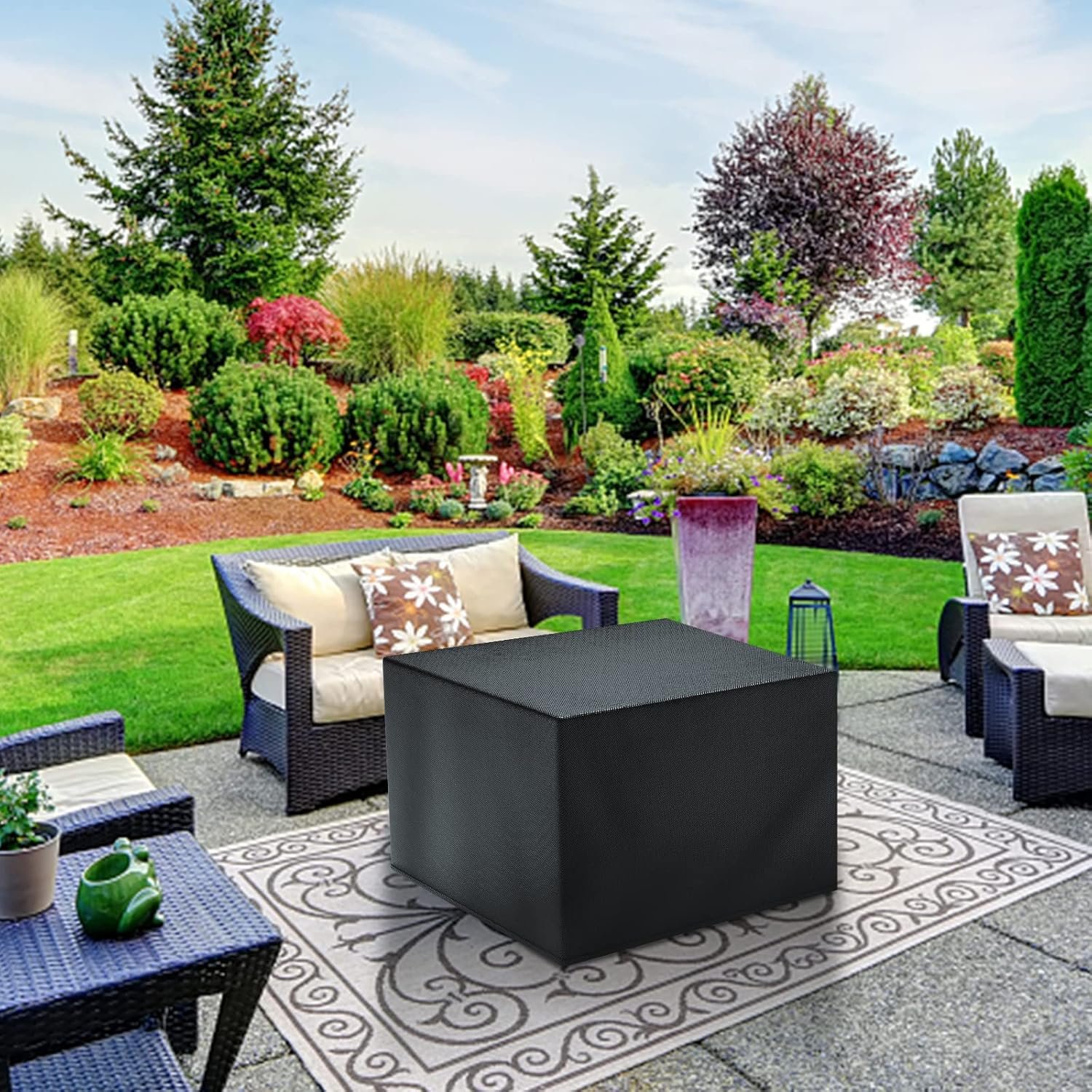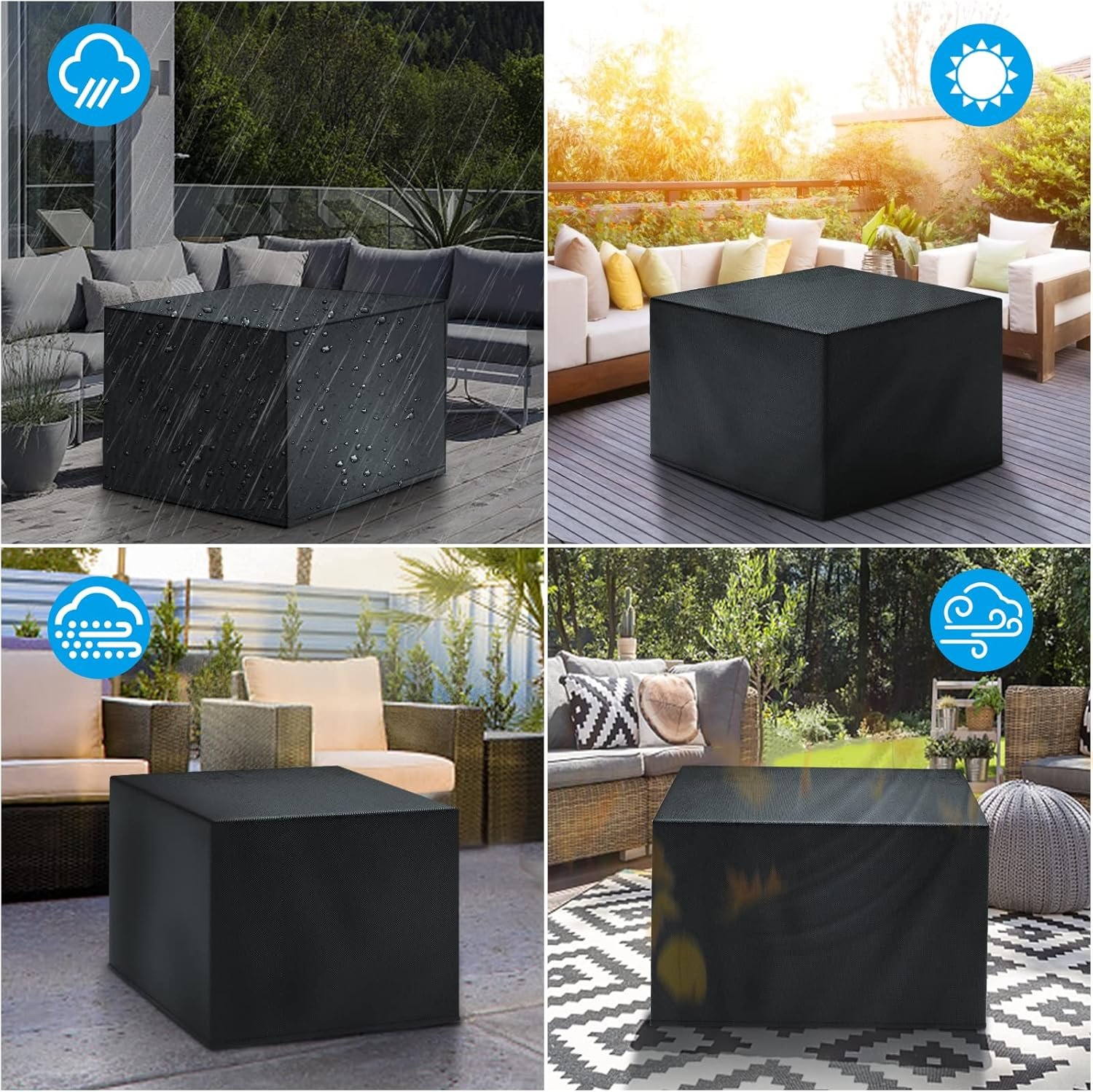 Waterproof Oxford Fabric – Patio ottoman cover made of durable oxford fabric with waterproof surface coating and exquisite stiching at seam.Strong durability to ensure uneasy to rip and fade.Worry free of your patio ottoman being affected by outdoor elements like sun, dust, rain, snow, etc