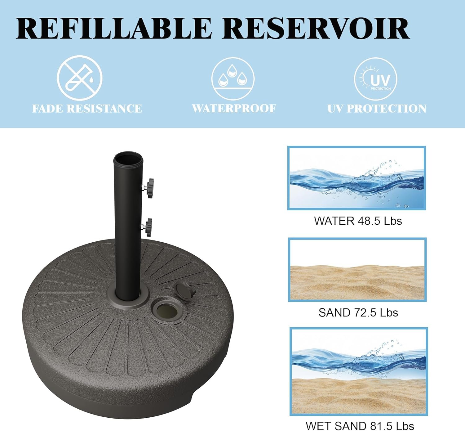 Patio Umbrella Stand, Outdoor Umbrella Base 22L Water Filled Stand, Market Patio Outdoor Heavy Duty Umbrella Holder (Black)