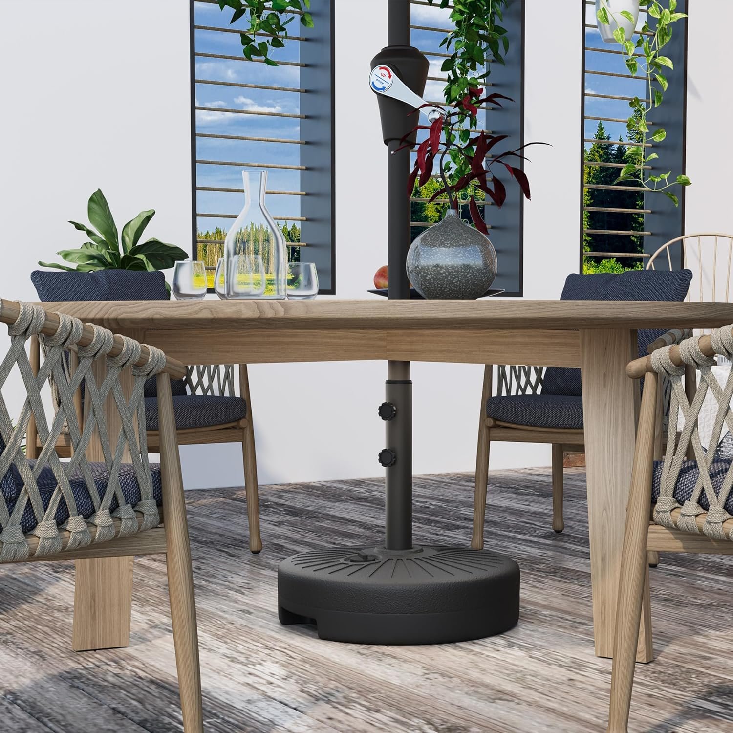 Double Lock Design: Featured with 2 adjustable knobs for securing umbrella to base, to ensure optimal strength and stability no matter the umbrella’s pole size