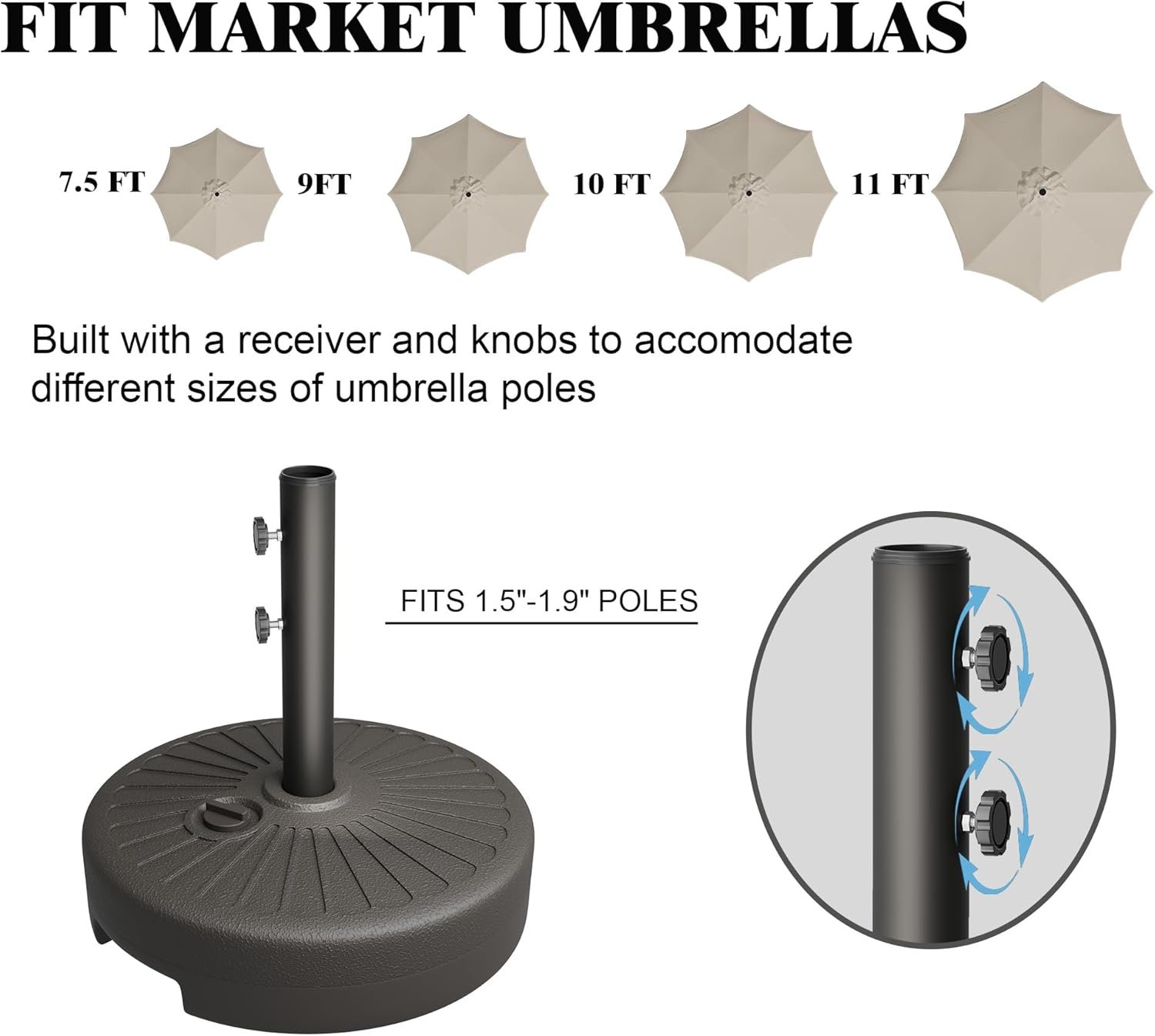 Various Umbrella Available: Versatile base features a steel pipe that accommodates all market umbrellas, ideal for holding most 6-10ft umbrellas with Φ1.5″ (38mm) to Φ1.9″(48mm) pole diameters