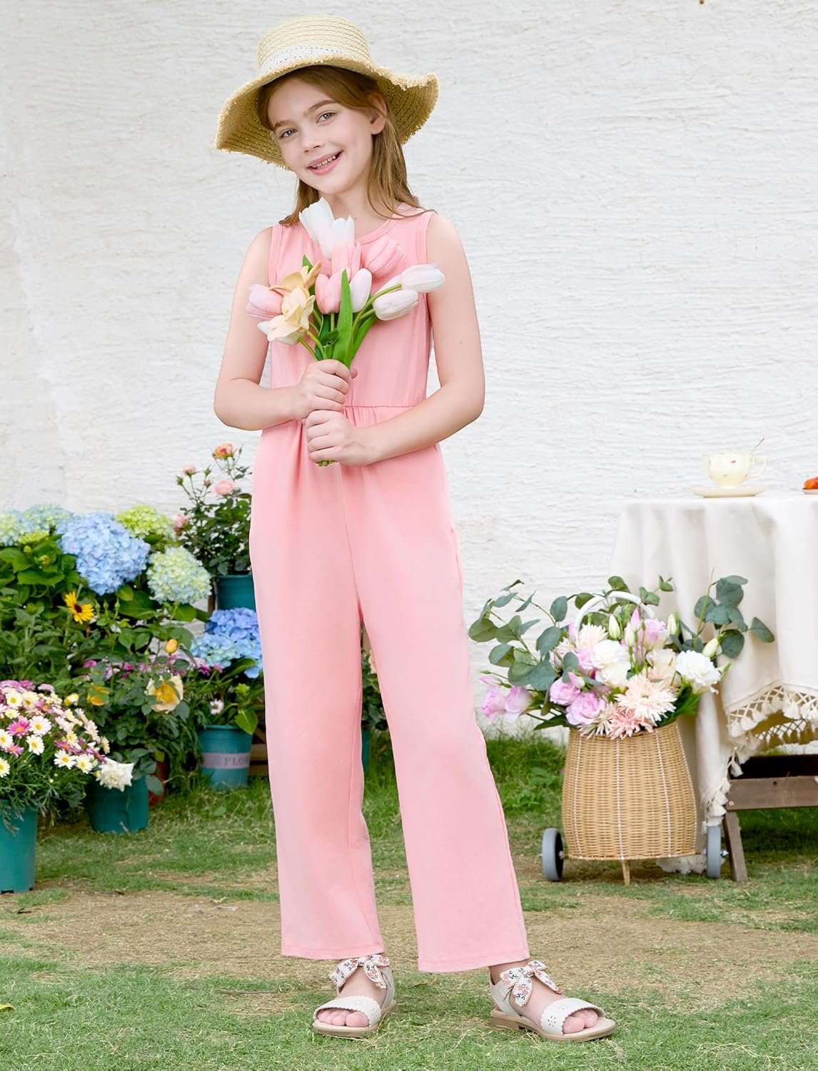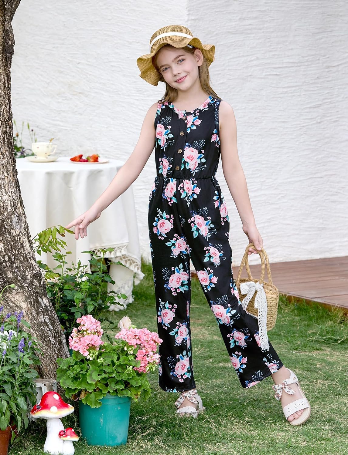 PATPAT Girls Sleeveless Button Down Romper Pants