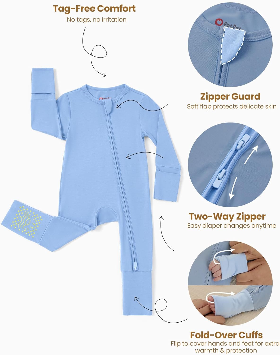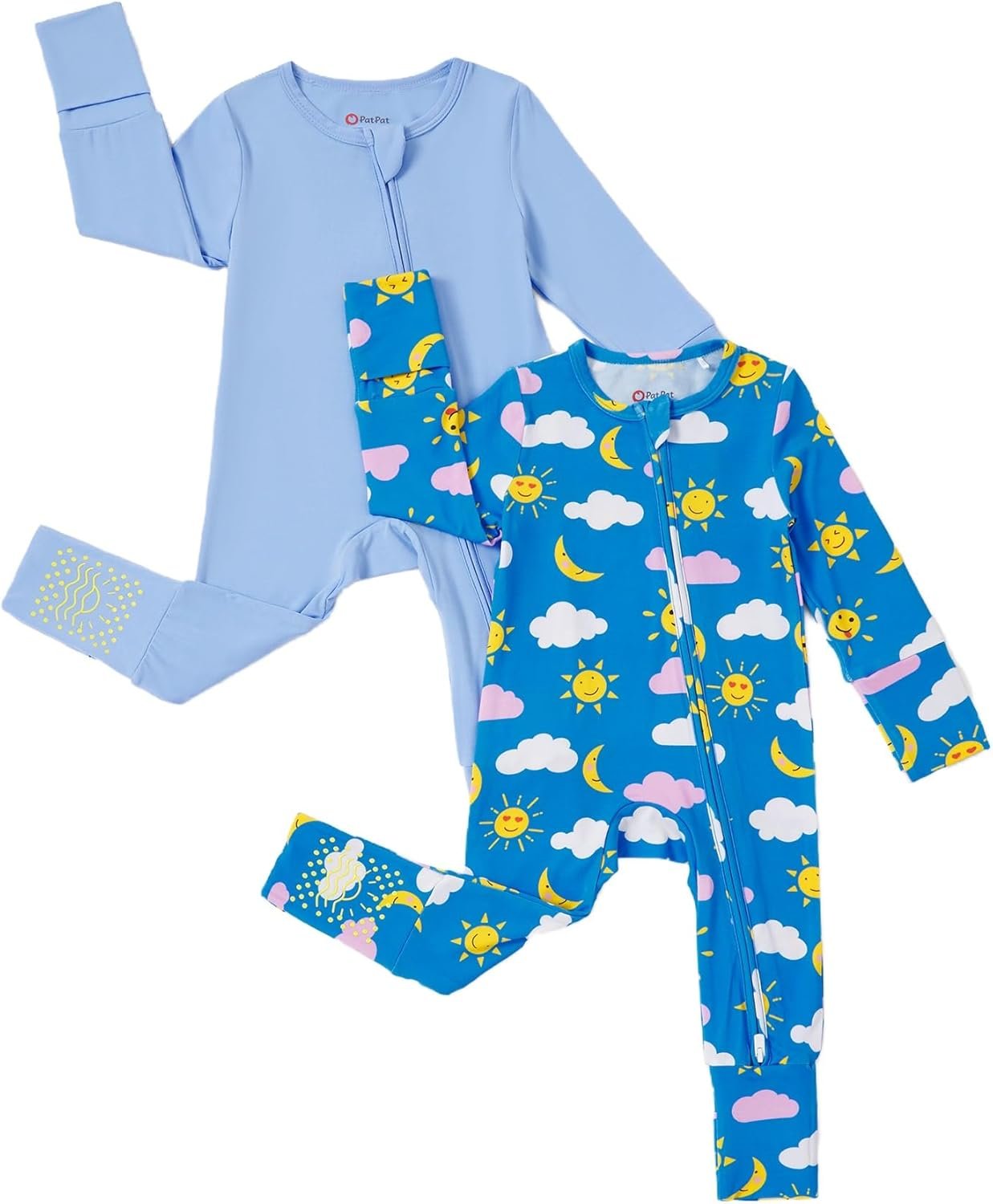 PATPAT Baby Footie Mitten – Supersoft Bamboo Viscose – Unisex Newborn Infant Clothes – 2 Way Zipper Long Sleeve 2pcs