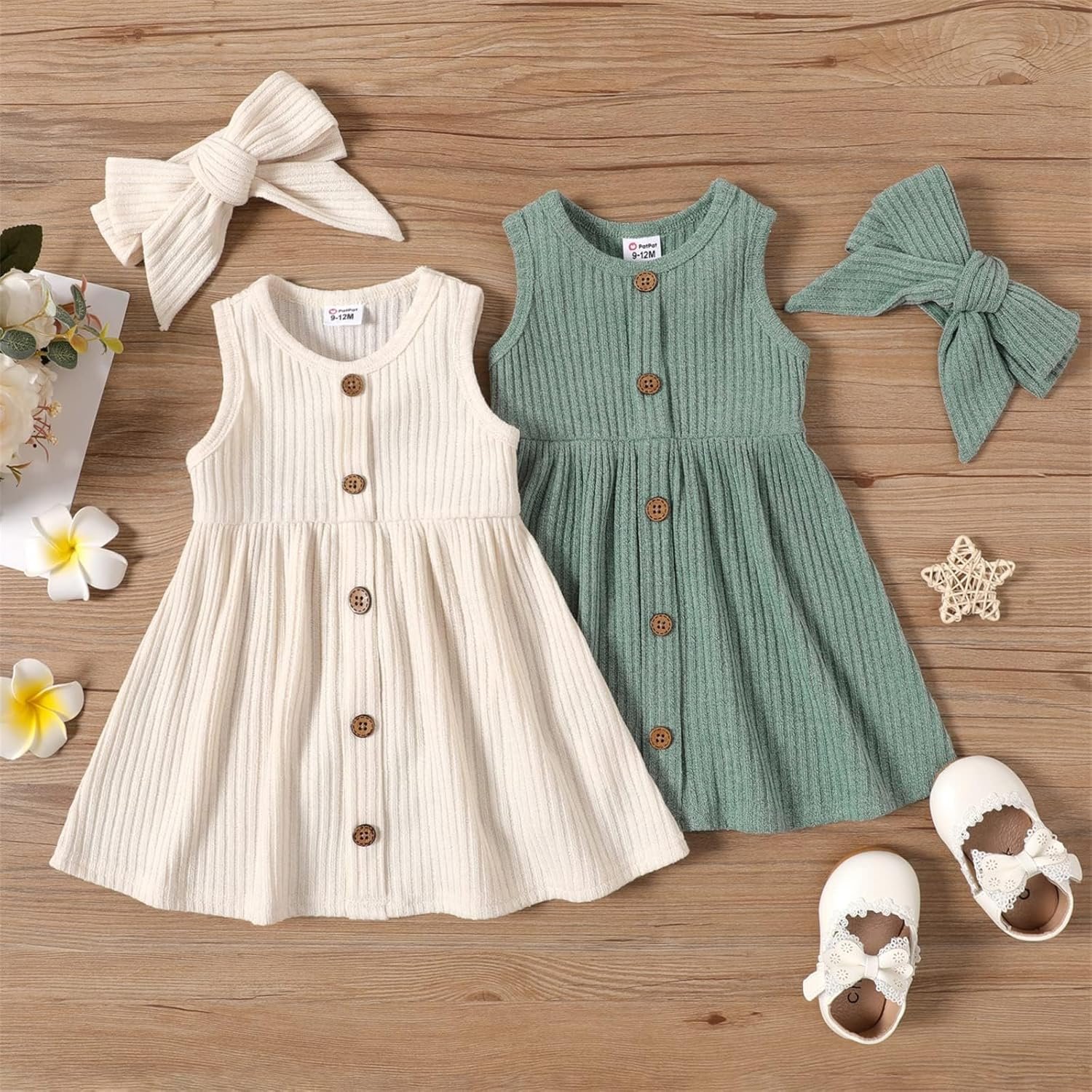 PATPAT Baby Toddler Girl Ribbed Knit Cotton Dress – Versatile Sleeveless Tank & Long Sleeve Dress