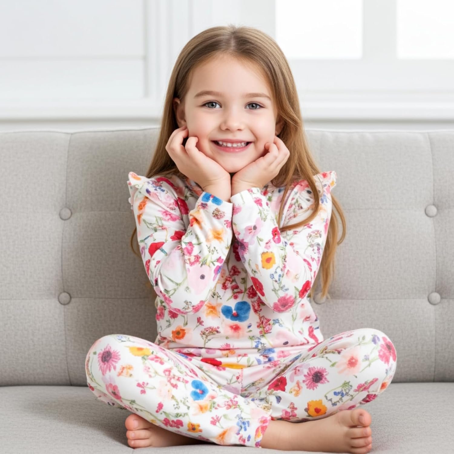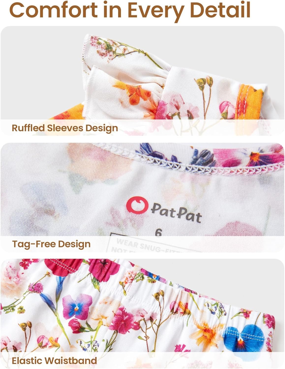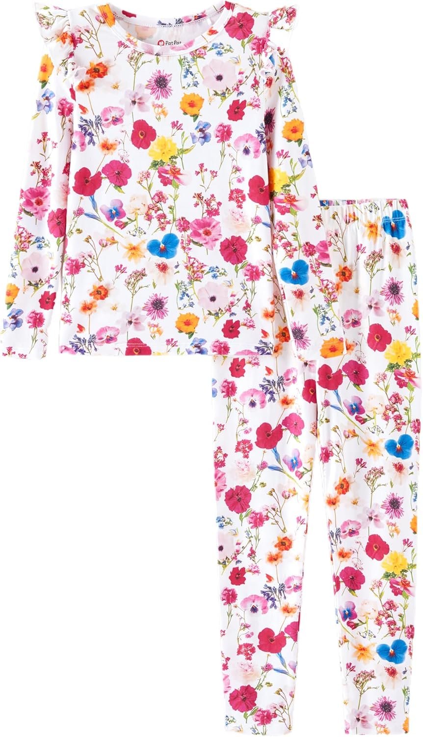 PATPAT Girls Pajama Sets Ages 2-12 Years – Snug Fit Long Sleeve Ruffle Sleepwear, Soft and Breathable Kids PJs