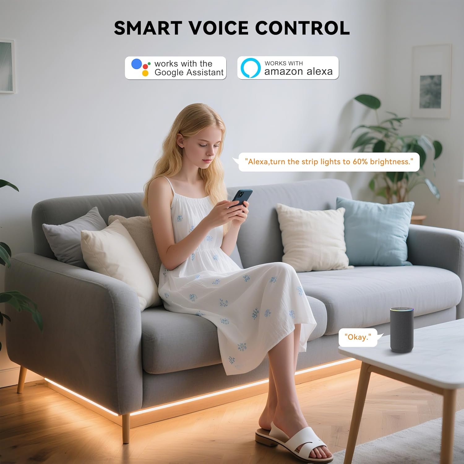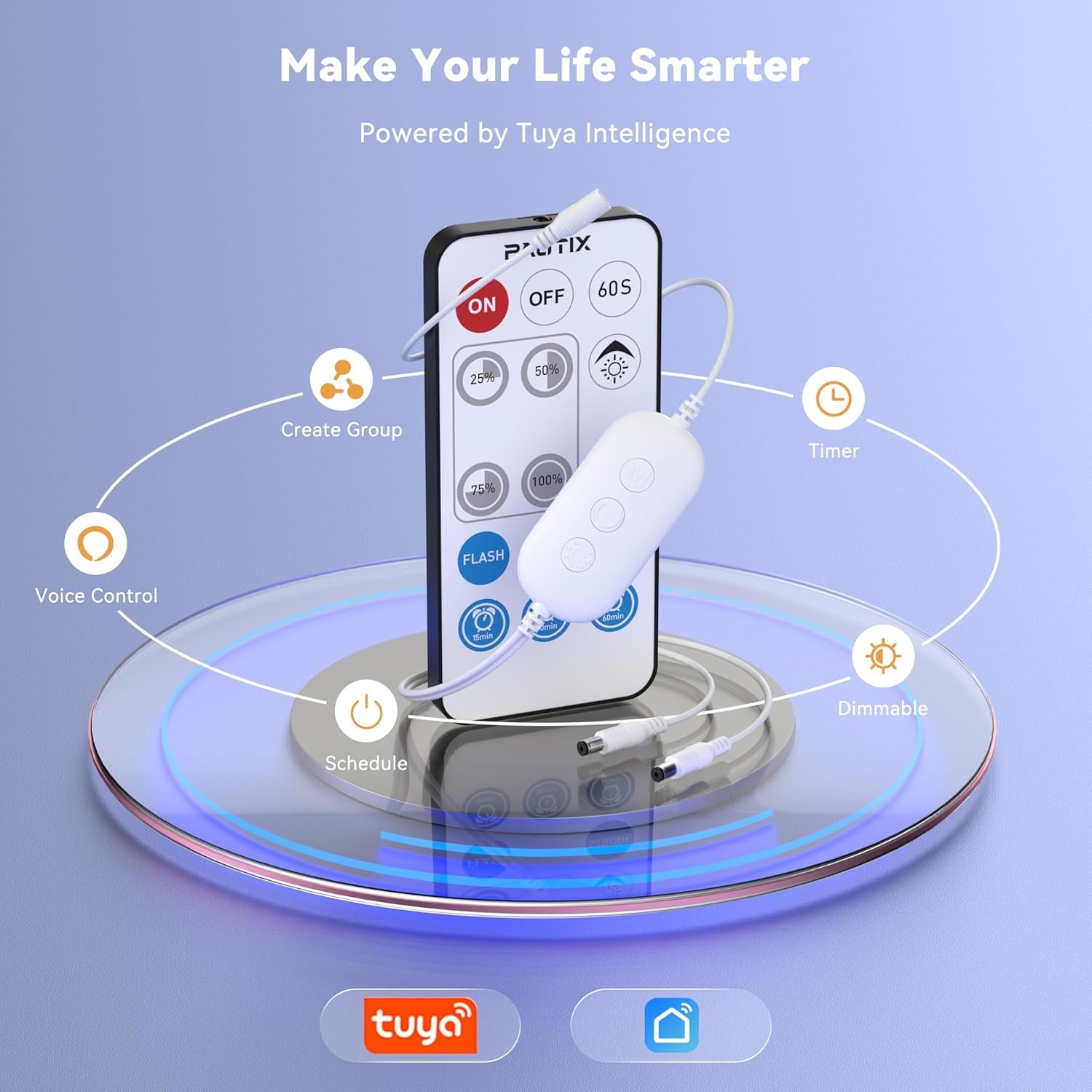 Voice Control:Compatible with Alexa/Google Assistant/Tuya/Smart Life. Just add Tuya/Smart Life to Alexa/Google Assistant to control PAUTIX light strips via voice commands. Wake up Alexa/Google Assistant to turn on/off the PAUTIX light strip at any time, and even control its brightness/mode via voice