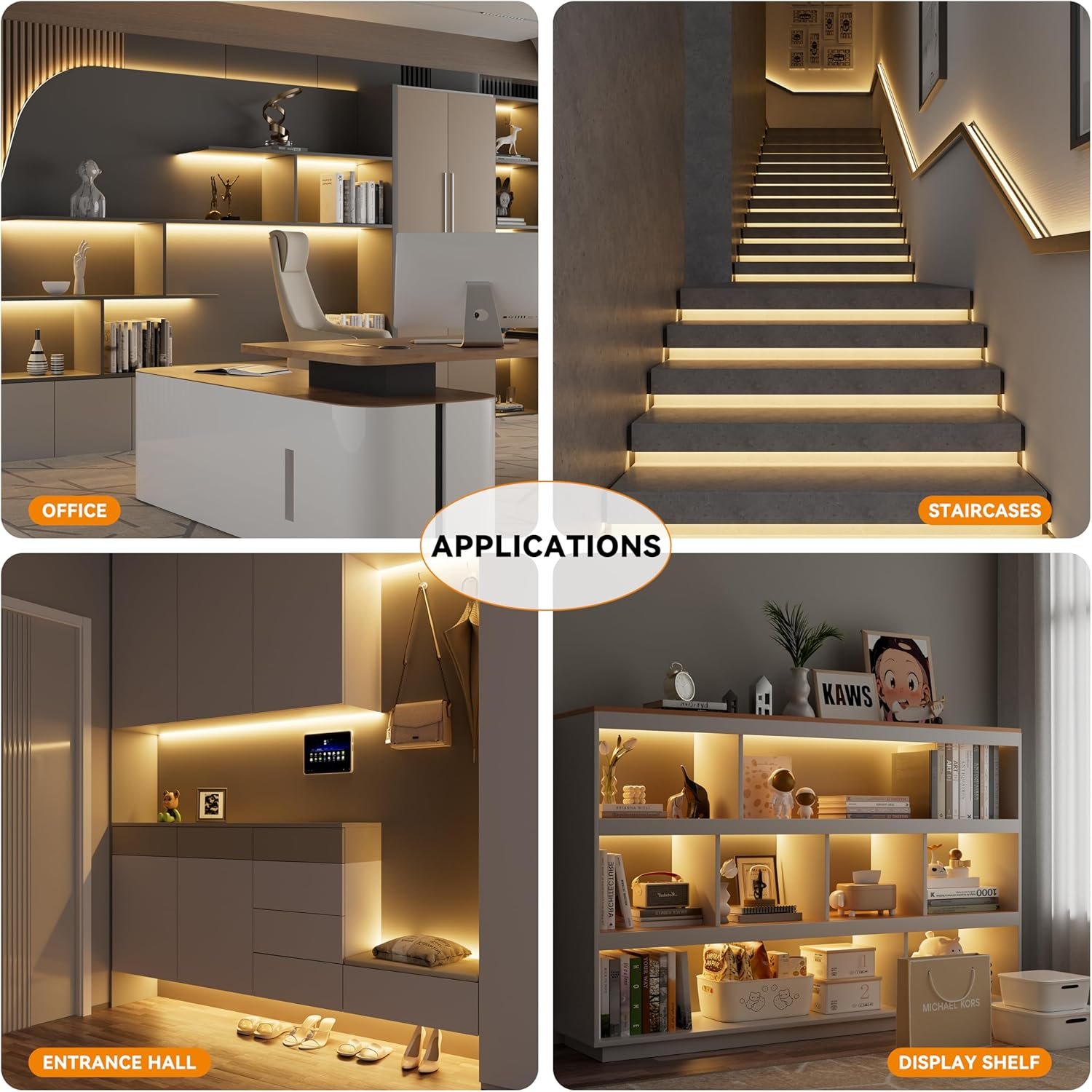 UL Listed, Safe and Durable: The working voltage of the strip light is 24V low voltage, very safe to touch! They are UL listed and made of lead-free materials, reliable quality and harmless to human health. With double-layer pure copper PCB board, the strip light has better conductivity and heat dissipation and is not even easy to crack, with a service life of more than 65,000 hours! The color rendering index is as high as 93+, and the color reproduction is more realistic