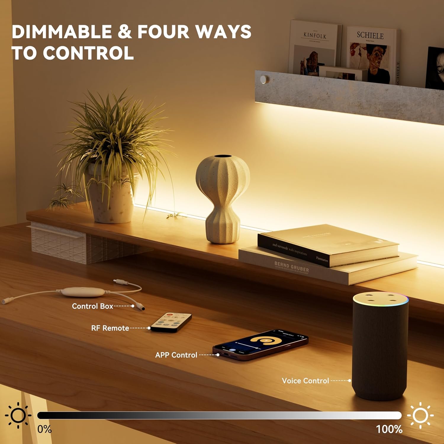 Super Bright & Long: Never heard of COB LED strip lights? Compared to SMD LED strips, COB (Chip On Board) LED Lights have multiple chips on the PCB (Printed Circuit Board), resulting in a super even lighting performance with no dark spots! With 9600 high-quality LEDs and a 2700K color temperature, you’ll enjoy incredibly bright lighting and improved color quality.The ultra-long continuous length of 65.6 feet/20 meters can satisfy you to decorate large spaces