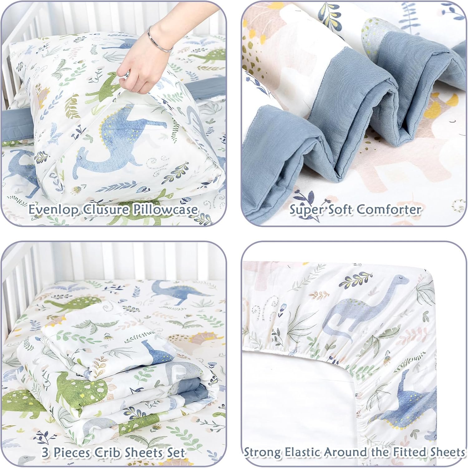 3-Piece Versatile Nursery Set: This crib toddler bedding set includes a fitted sheet measuring 52” x 28” with 8” deep pockets and premium elastic around each corner, a lightweight quilt (49‘’ x 36”), and a pillowcase (19” x 27”). It is designed to transition seamlessly from infant cribs to toddler beds, grows with your child, and complements any nursery decor