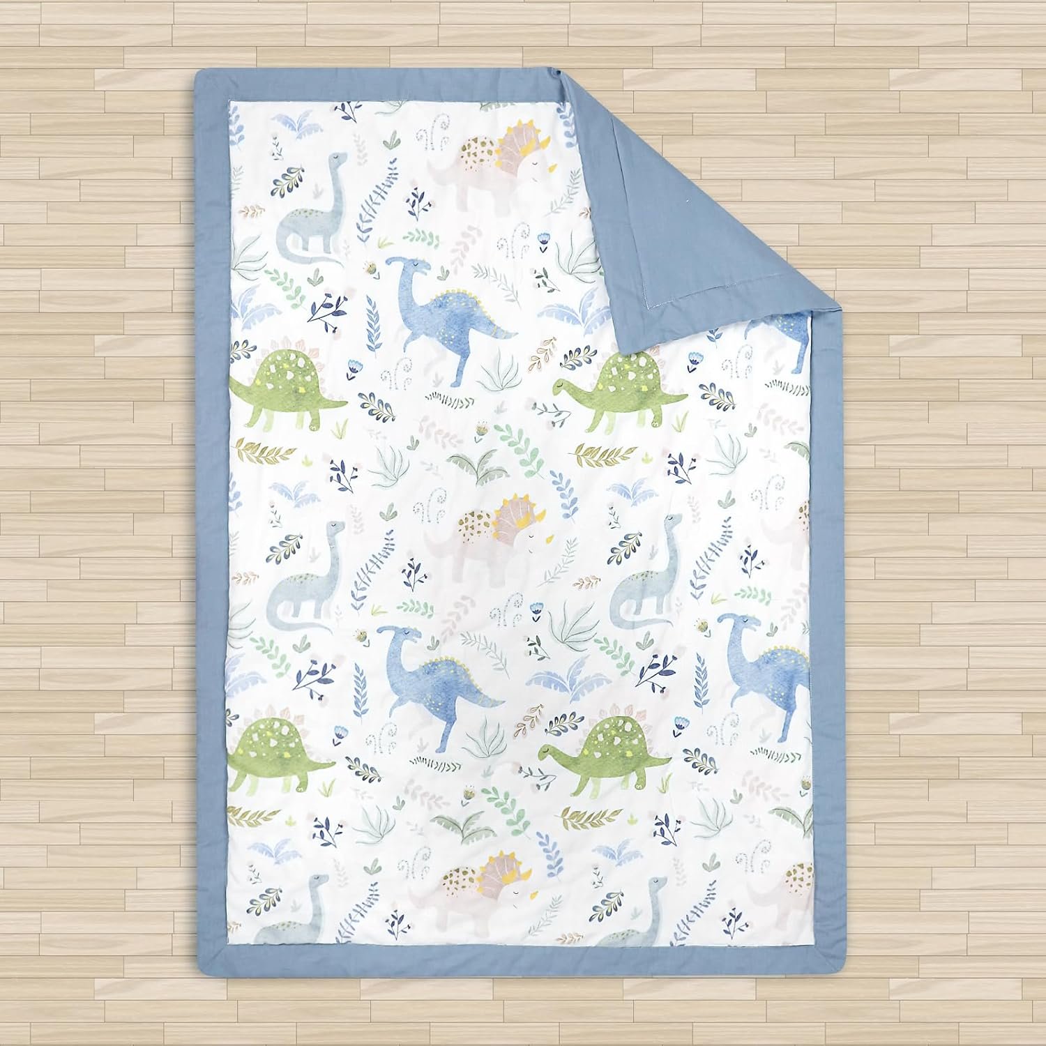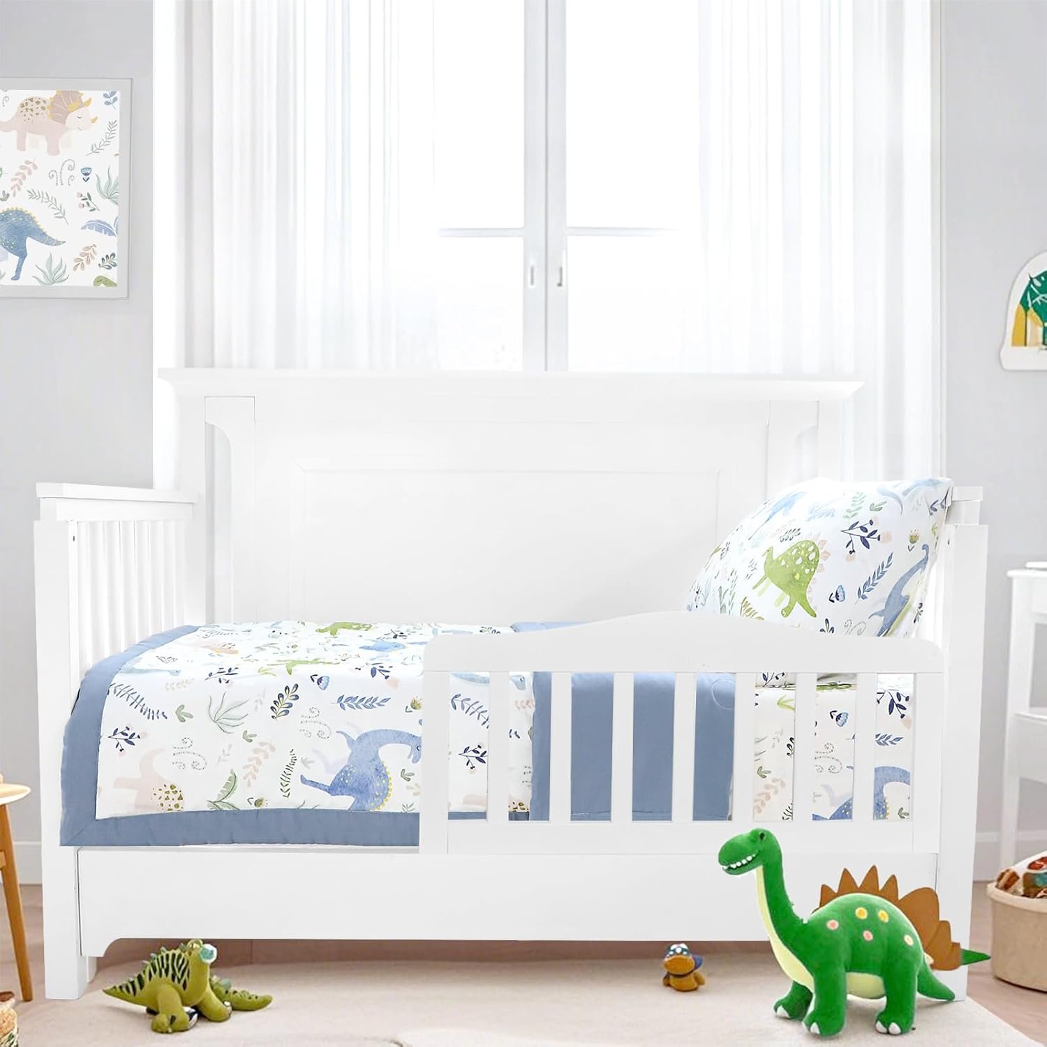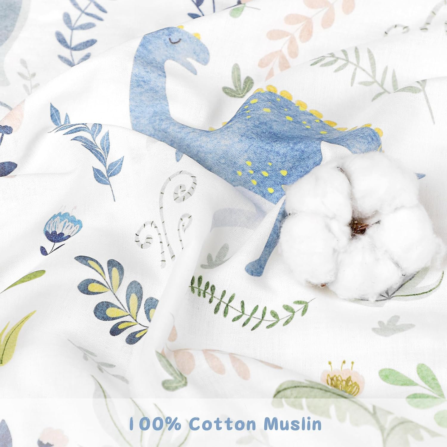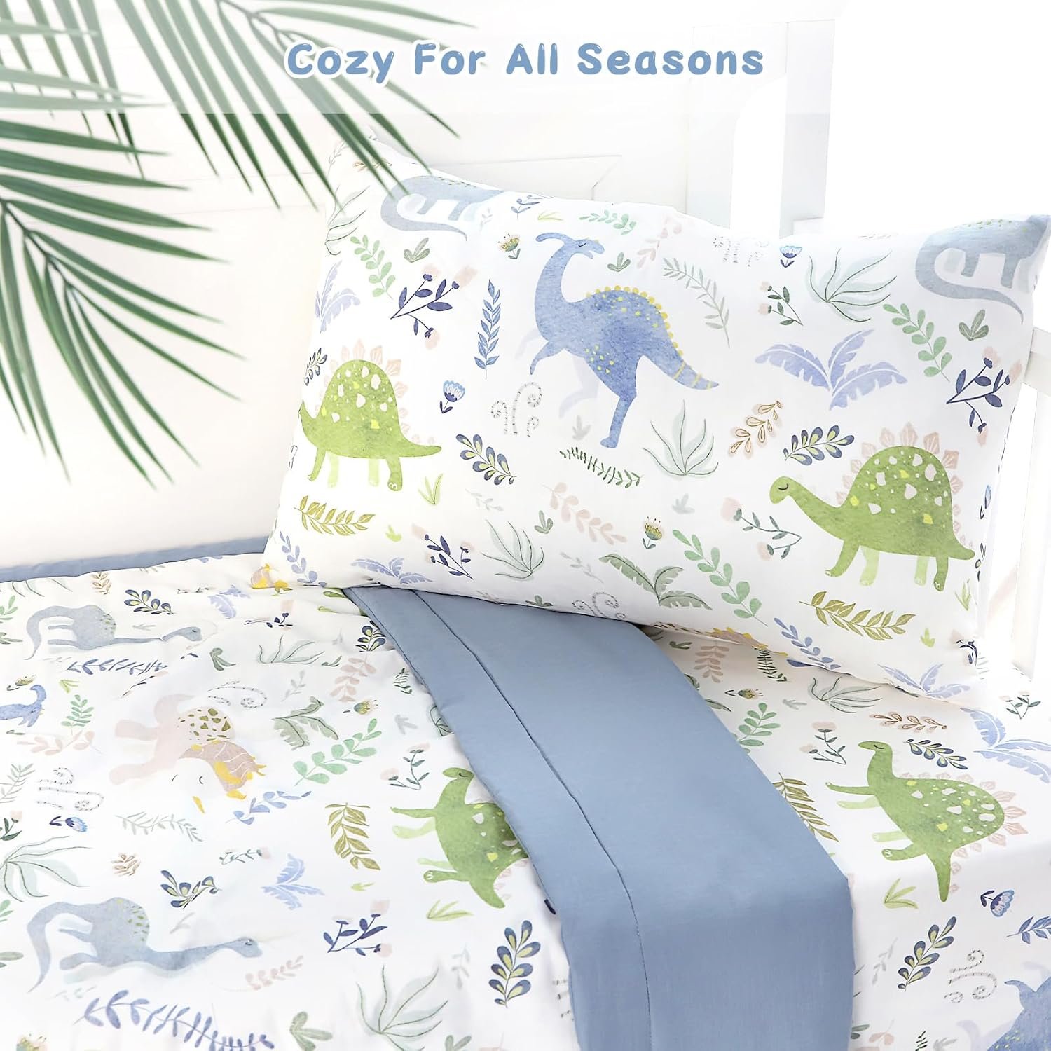 Pea Pod Muslin Toddler Bedding Set 3-Piece – Soft Breathable Crib Bedding with Fitted Sheet, Quilt & Pillowcase for Infant & Kids Bed | Machine Washable Nursery Bed Set (Dinosaur)