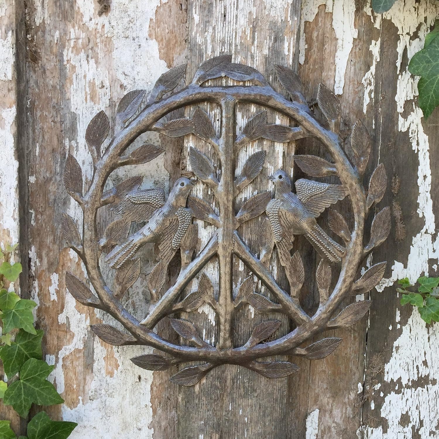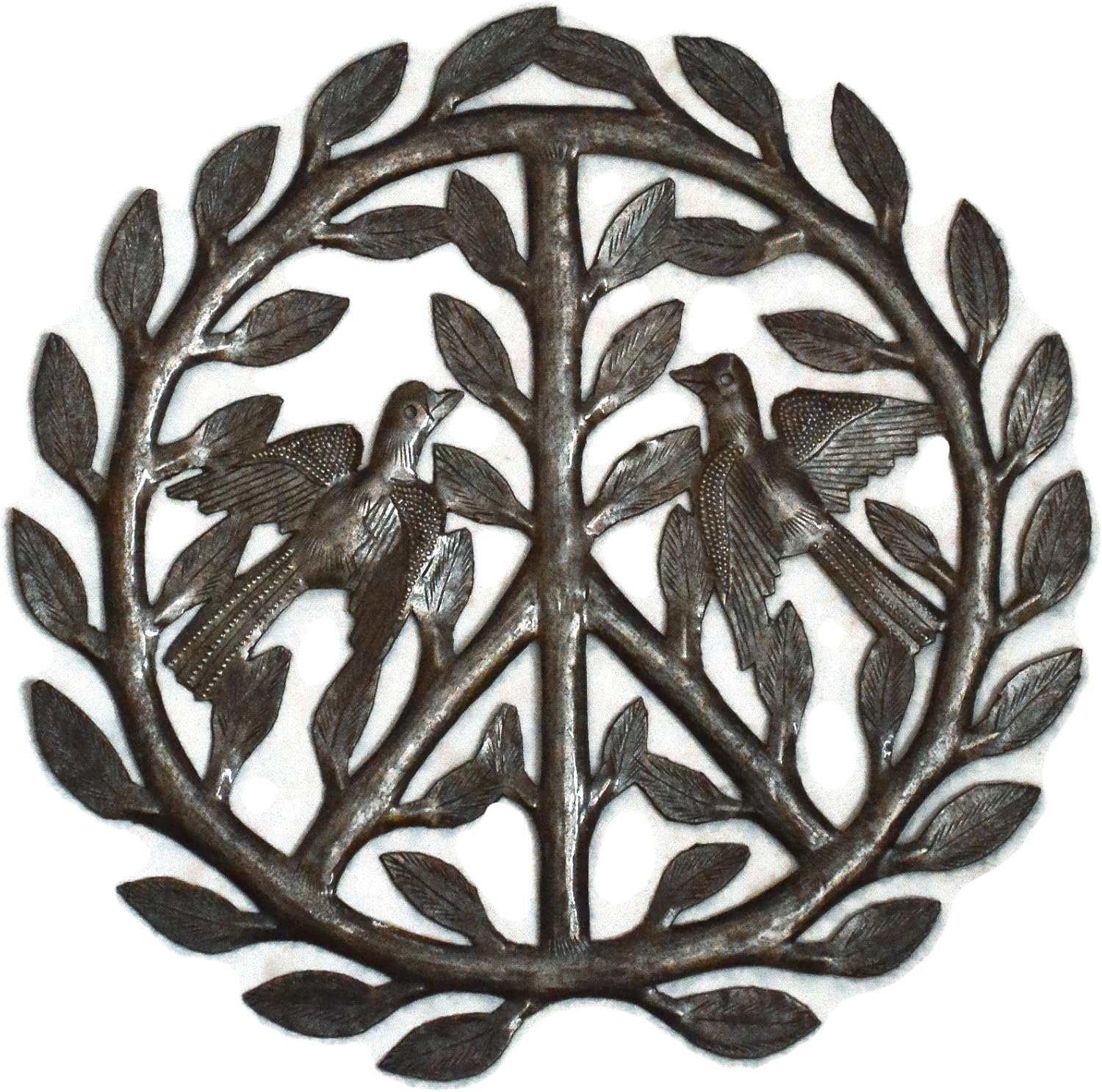 “All we are saying is give peace a chance.” John Lennon  called for it in a song in 1969 and we’re echoing that same thought today in handmade metal art from Haiti. You don’t have to be a hippie to love the beauty of this symbol adorned with doves and laurel leaves.  It’s fair trade and recycled, too. How great is that?