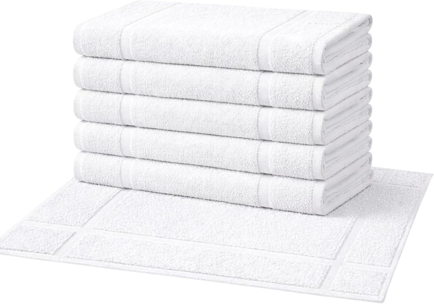 6-Pack Value Set – Large 20×30” Size Includes six generously sized 20×30 inch bathroom mats, ideal for home, guest, or spa use. A must-have for households needing absorbent and stylish cotton bath mats.