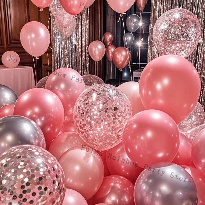 Pearl Powder Confetti Metal Latex Balloons Wedding Decoration Pink Globos New Year Birthday Party Baby Shower Anniversary Decor