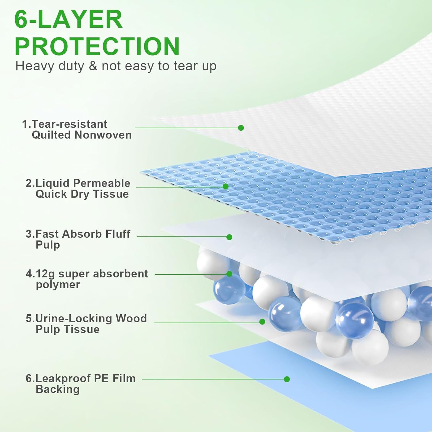 Ultra Absorbent Polymer & Durable 6 Layers Protection: Super Absorbent Polymer And Fluff Pulp Hold More Liquid Up To 10 Cups(1000ml),With More Polymer And Fluff Pulp Than Others, These Dog Pads Extra Large Turn Liquid Into Gel Faster, Keep Your Floor Dry, And More Money Saving