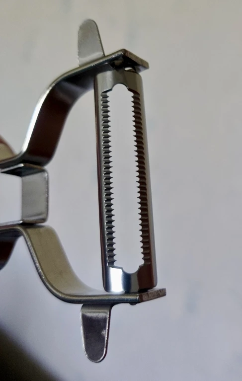 Looks good and sturdy material. So far survived a dishwasher without any rust. It’s considerably bigger than my regular peeler for potatoes. I would definitely buy it again