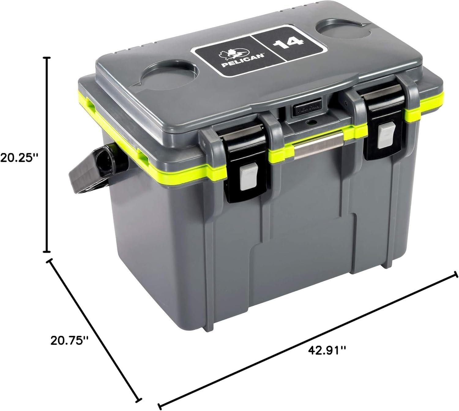 FEATURES: Carry handle, molded-in cup holders, press and pull latches, stainless steel bottle opener with cap-catching magnet, and molded-in tie-down slots