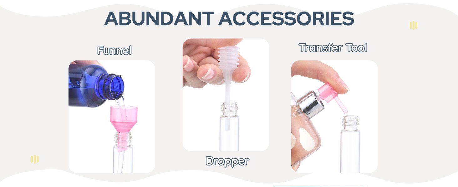 - Easy to Refill: The refillable atomizer kit includes a funnel, a pipette, transfer pipettes, and 2 writable labels to help you easily identify your different fragrances. The bottle features a glass interior that is both durable and easy to clean for repeated use. If you have any questions, our customer service team is available 24/7.
