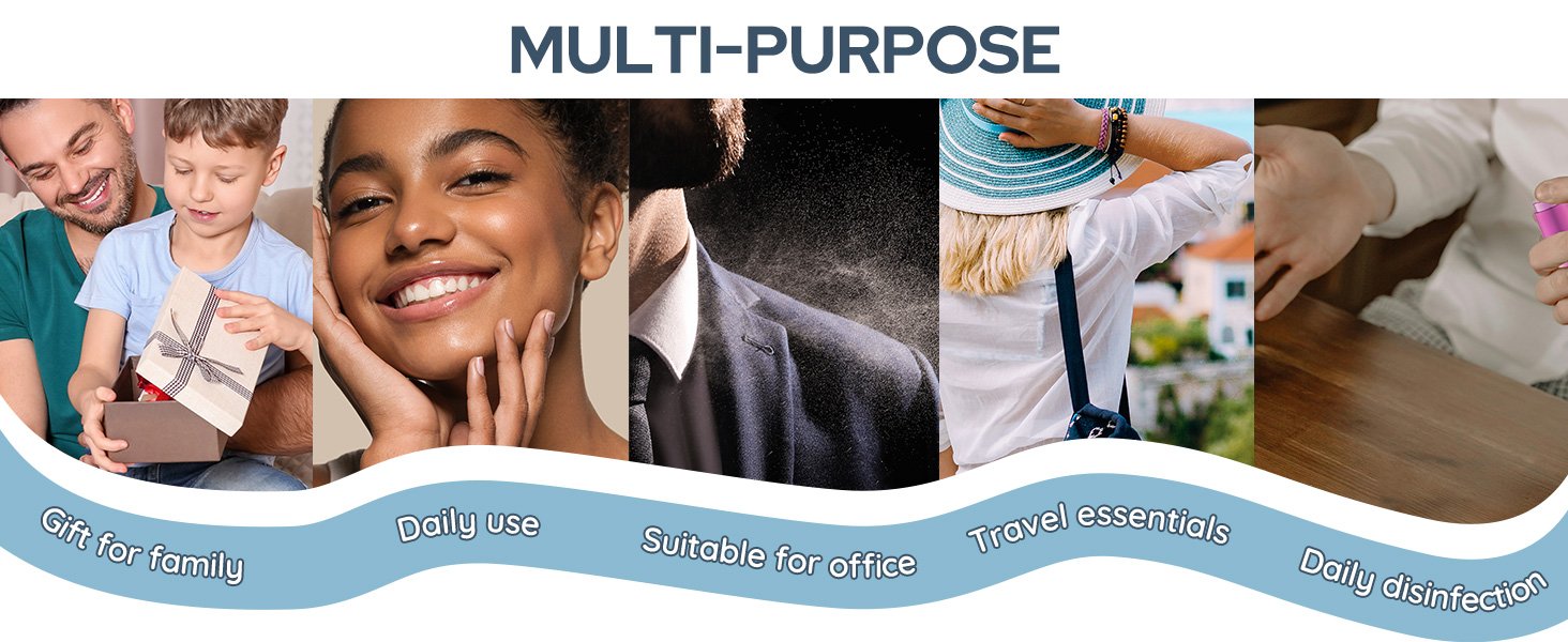 - Versatile for all occasions: It’s not just a travel essential, it’s perfect for everyday use, commuting, attending a wedding or going to the gym, our spray bottle is perfect for you. Keep it in your purse, bag or car and use it to freshen, eliminate odors or boost your confidence. It’s not just for perfumes, you can also use it for RTD coffee beans, personal cleaning and disinfection, hair styling or even misting plants.