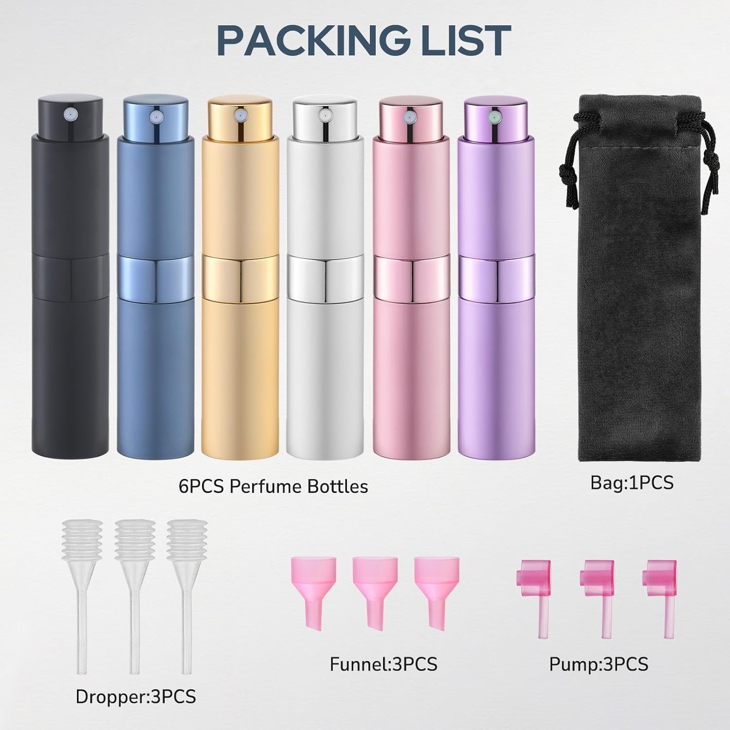 Travel Fragrance Atomizer – Elevate your scent game on the go with this small perfume spray bottle refillable set! Designed for women, men, kids, these 8ml travel spray bottles TSA approved are your ultimate travel must haves for airplane journeys. Effortlessly carry your favorite perfume, cologne, or aftershave. Its compact and portable design fits perfectly in your purse or pocket, making it ideal for any adventure. This is a great travel essential!