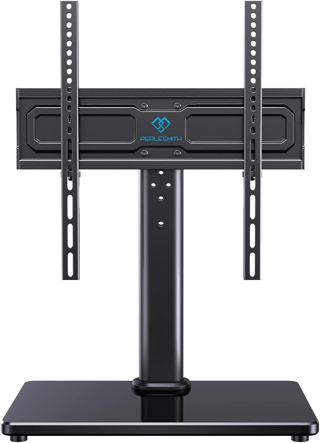 PERLESMITH Universal Swivel TV Stand for 24-60 inch TVs up to 99 lbs, 8 Height Adjustable Table Top TV Stand, TV Base Stand with Tempered Glass Base, Max VESA 400x400mm, PSTVS33