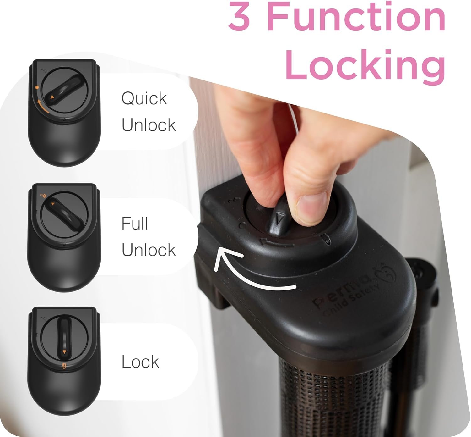 Perma Child Safety Retractable Baby Gate, 71″ Wide x 33″ Tall, Mesh for Stairs, Doorways, Indoors, Outdoors, Dogs, One-Hand Operation, Locks, Easy Install, Black