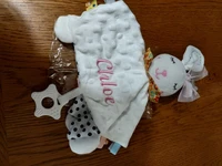 13 reviews for Personalised Baby Elephant Security Blanket with Silicone Teether Organic Cotton Comforter Infant Shower Gifts