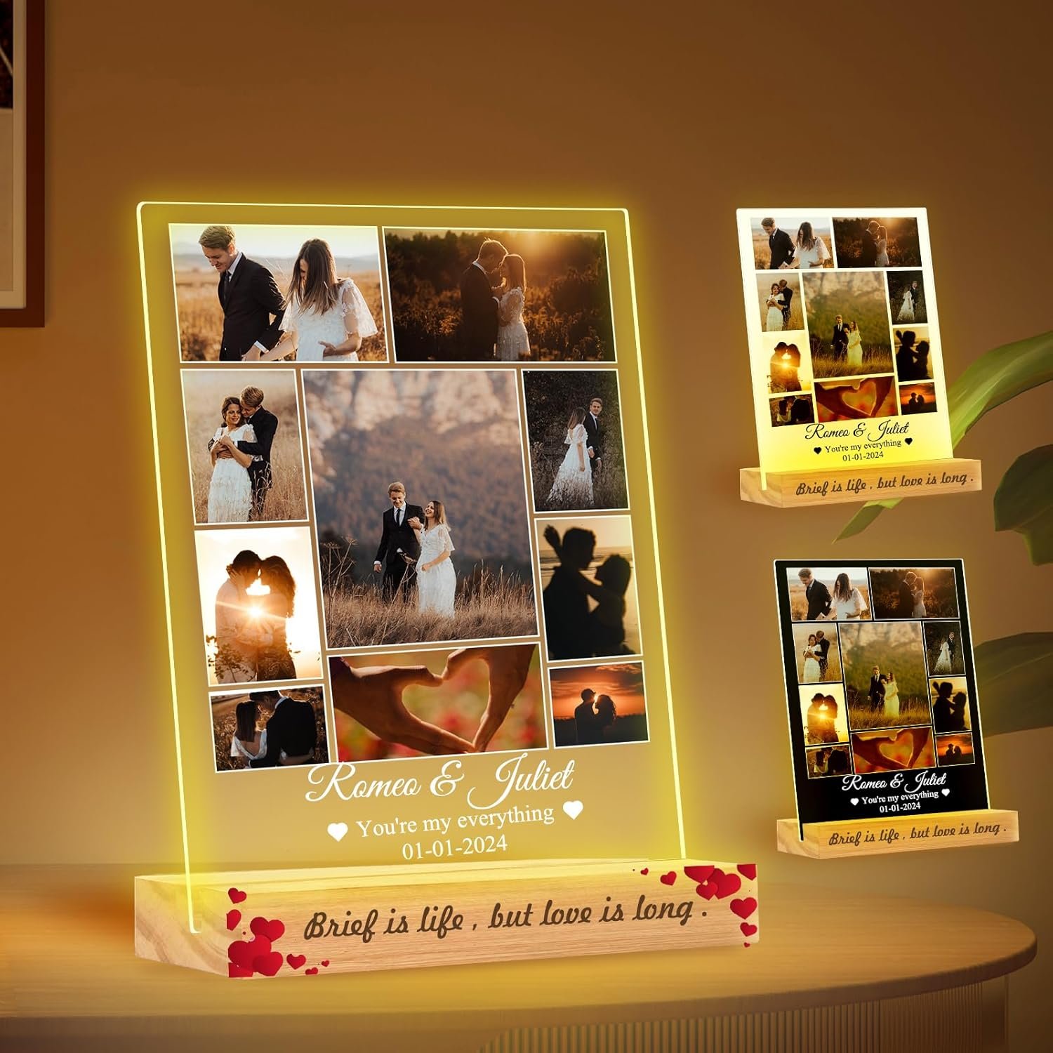 Personalized Acrylic Plaque Printed with Photos, Custom Wood Picture Frame with LED, Birthday Gift for Husband Wife, Personalized Valentines Gifts for Boyfriend Girlfriend (5 Size: 6″-16″)