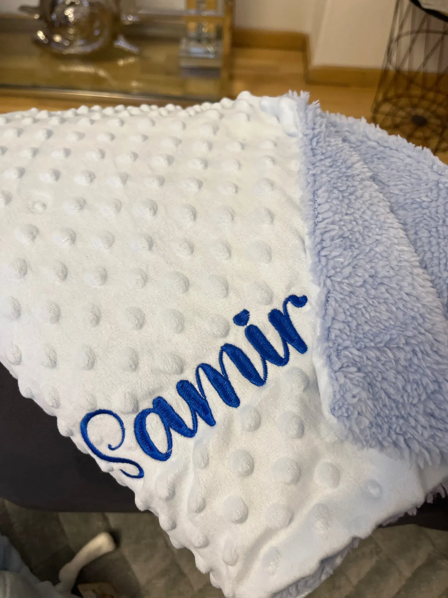 Fantastic machine embroidery, both on the blanket and the doll! touch quite soft and inside is fleece