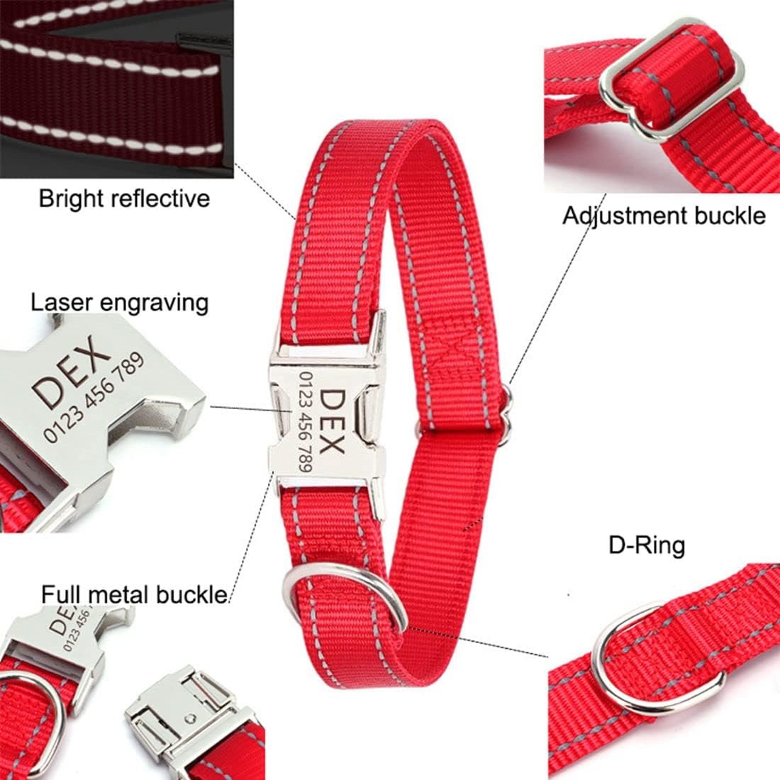 Personalized Dog Collar, Free Engraved Custom Dog Collars with Name Plate Id Tag, Reflective Nylon Metal Buckle Pet Puppy Collars for Xs Small Medium Large XL Dogs