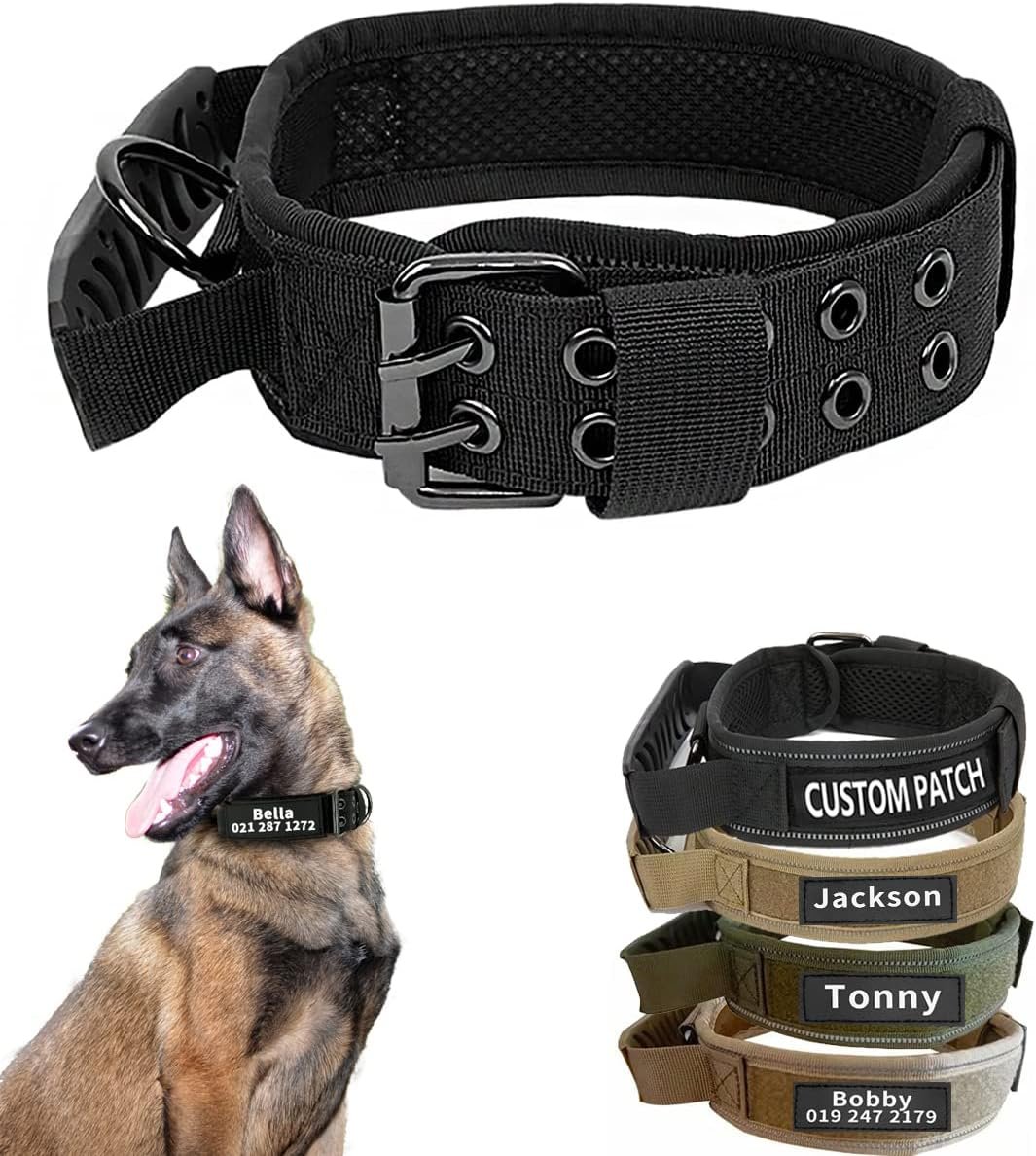 Personalized Tactical Dog Collar Handle with Name Phone Number Tags, Custom Military Pet Collars for Medium Large Breeds