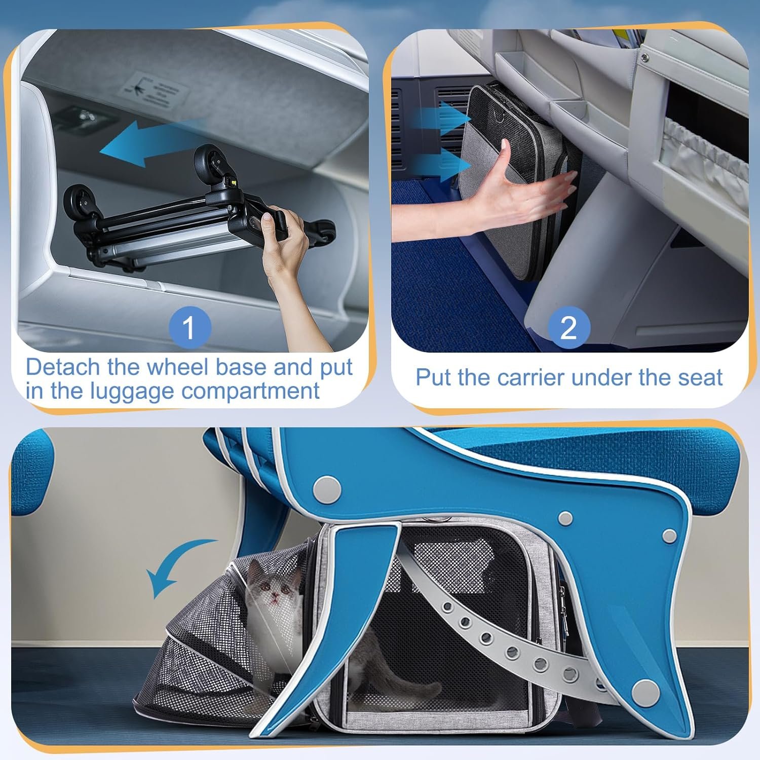 Comfortable and Safe with Detachable Features: This airline approved cat carrier is built with a removable, washable fleece bed pad for extra comfort. The rolling cat carrier’s sturdy frame and strong handles offer stability, while the adjustable safety leash ensures your pet stays secure. Breathable mesh sides and an attached soft mat keep your pet cool and cozy on any trip, giving them a home-like environment.