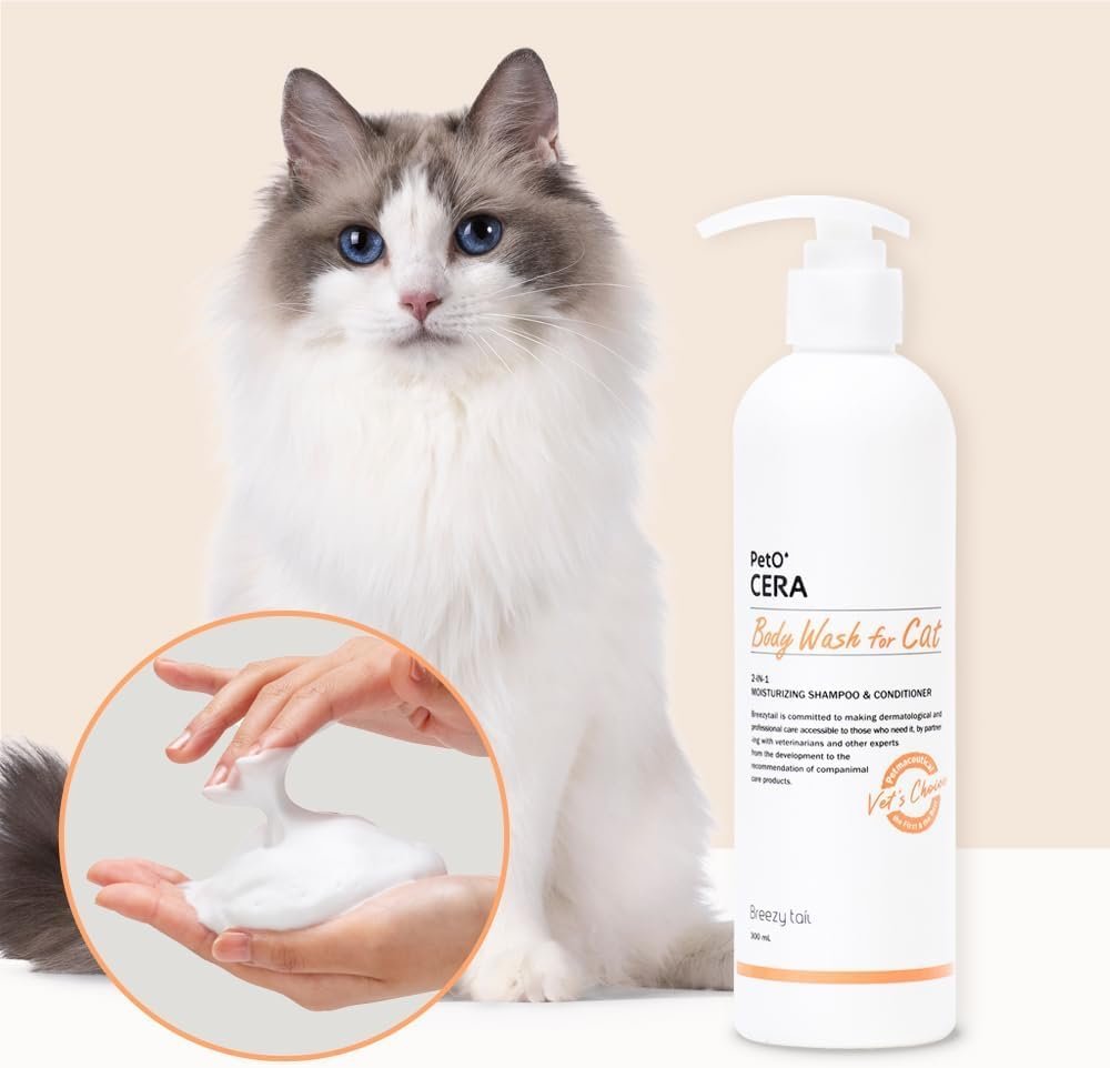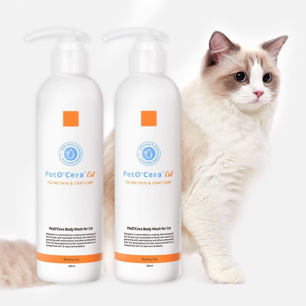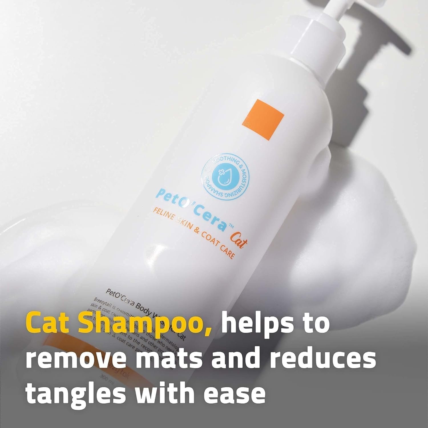 PetO’Cera Cat Shampoo | Hypoallergenic Feline Skin & Coat Care Body Wash| Itch Relief, Moisturizing & Rejuvenating| Veterinarian Approved and Formulated Shampoo for Cats (Bundle (20.2oz))