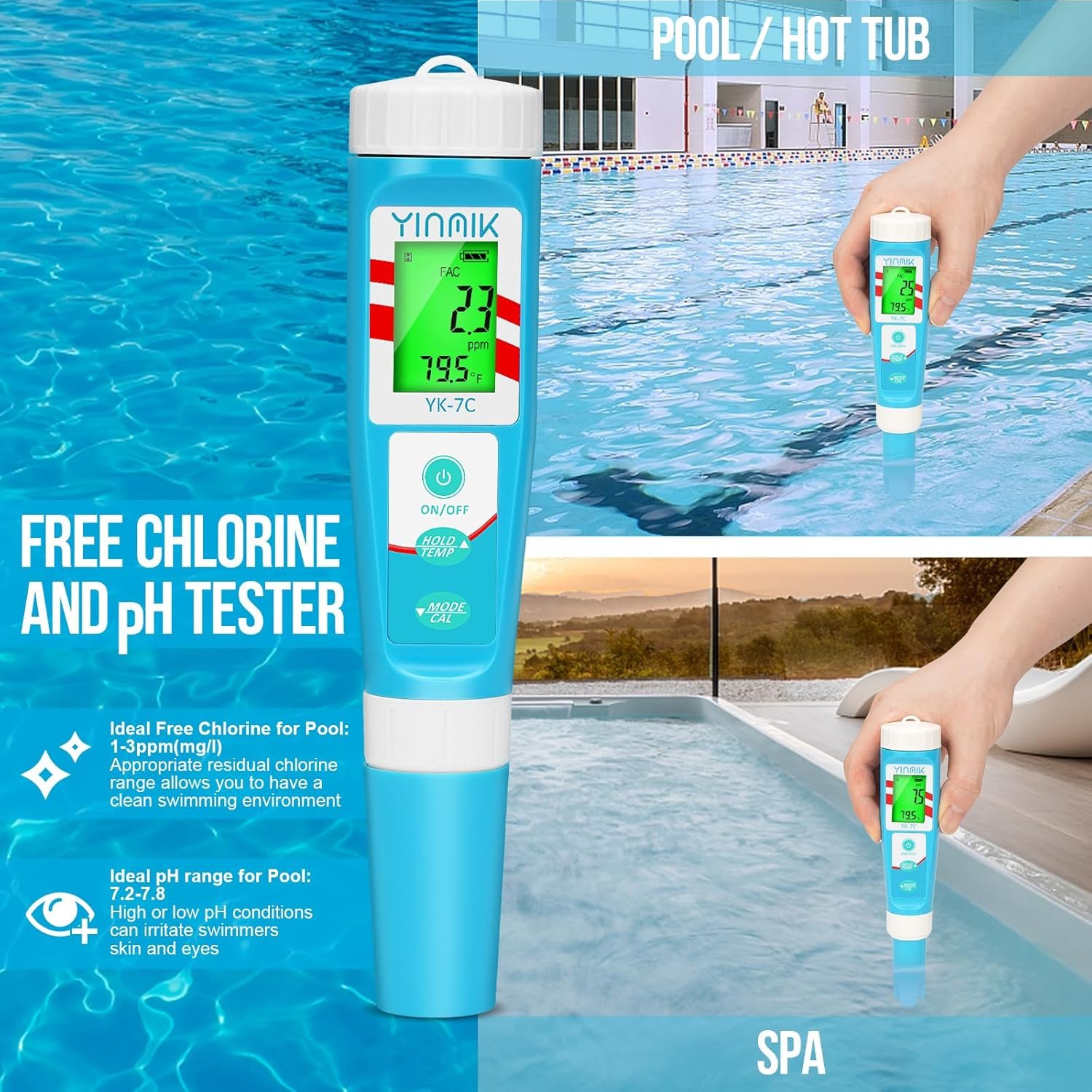 YINMIK will provide you with a more technological choice. YK-7C has a digital backlight display function, which is more accurate, and long time use and saves costs. It is the nice choice for families and outdoor swimming pools