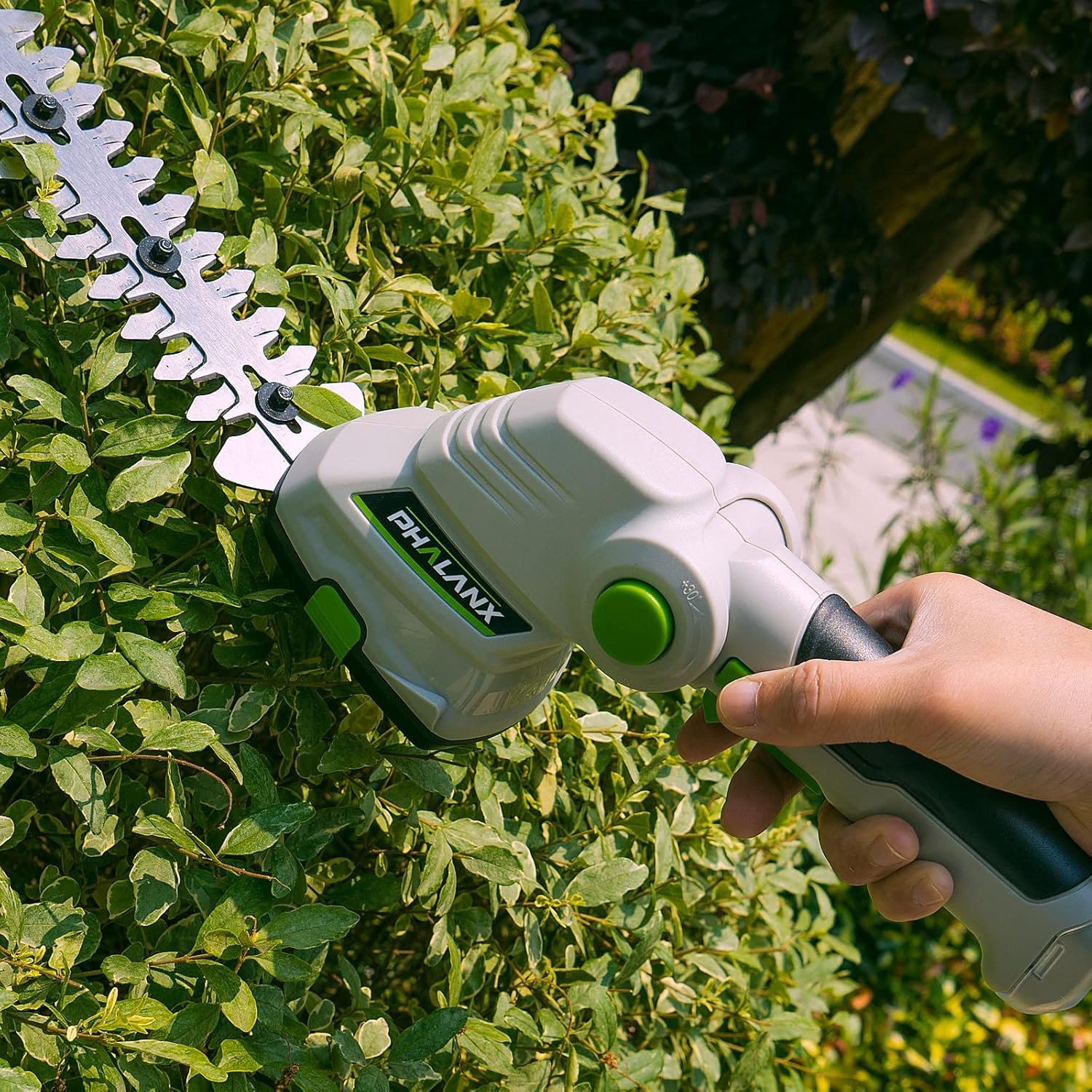 PHALANX Cordless Grass Shears 2-in-1 Handheld Hedge Trimmer,7.2V Electric Grass Trimmer Turnable Handle, Rechargeable Lithium-Ion Battery and Charger Included for Lawn/Garden