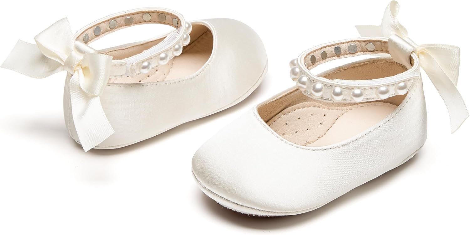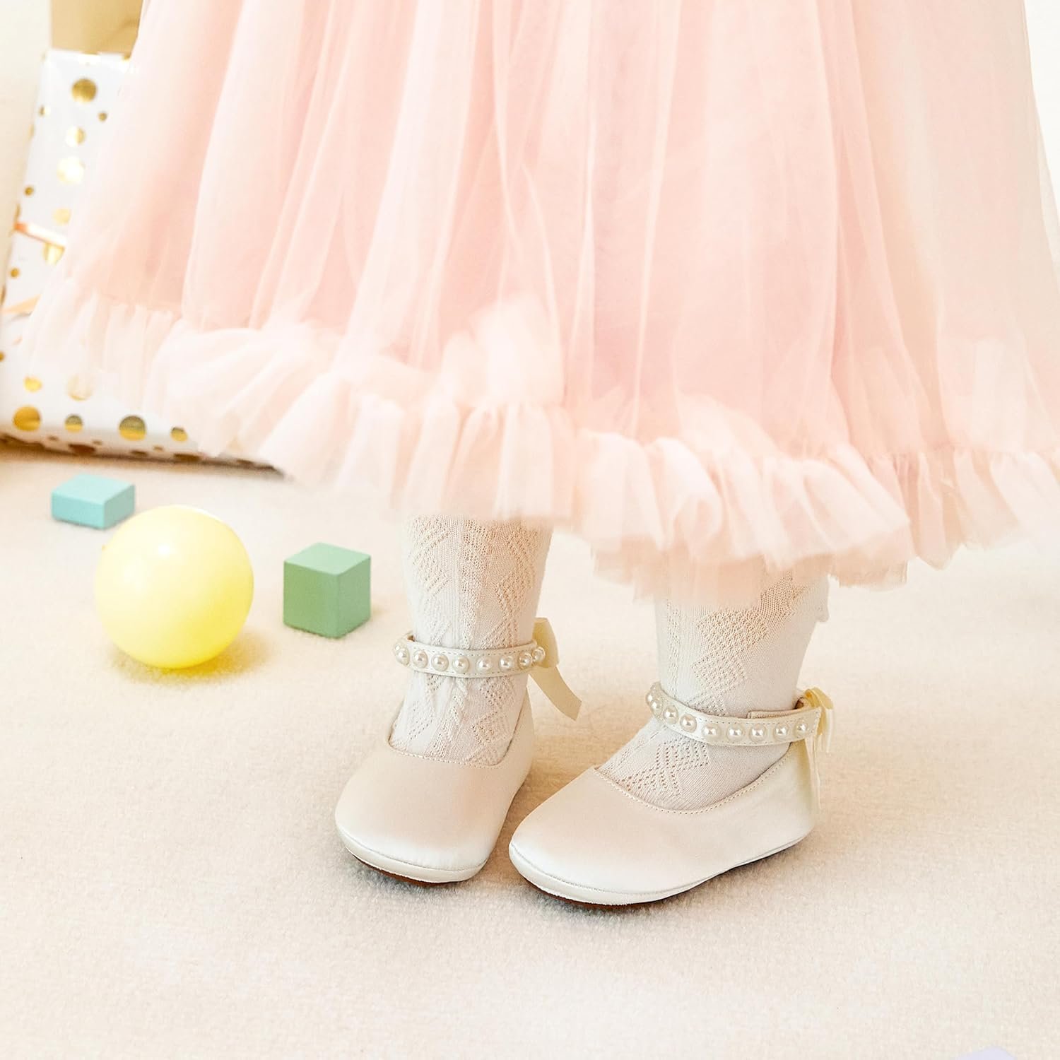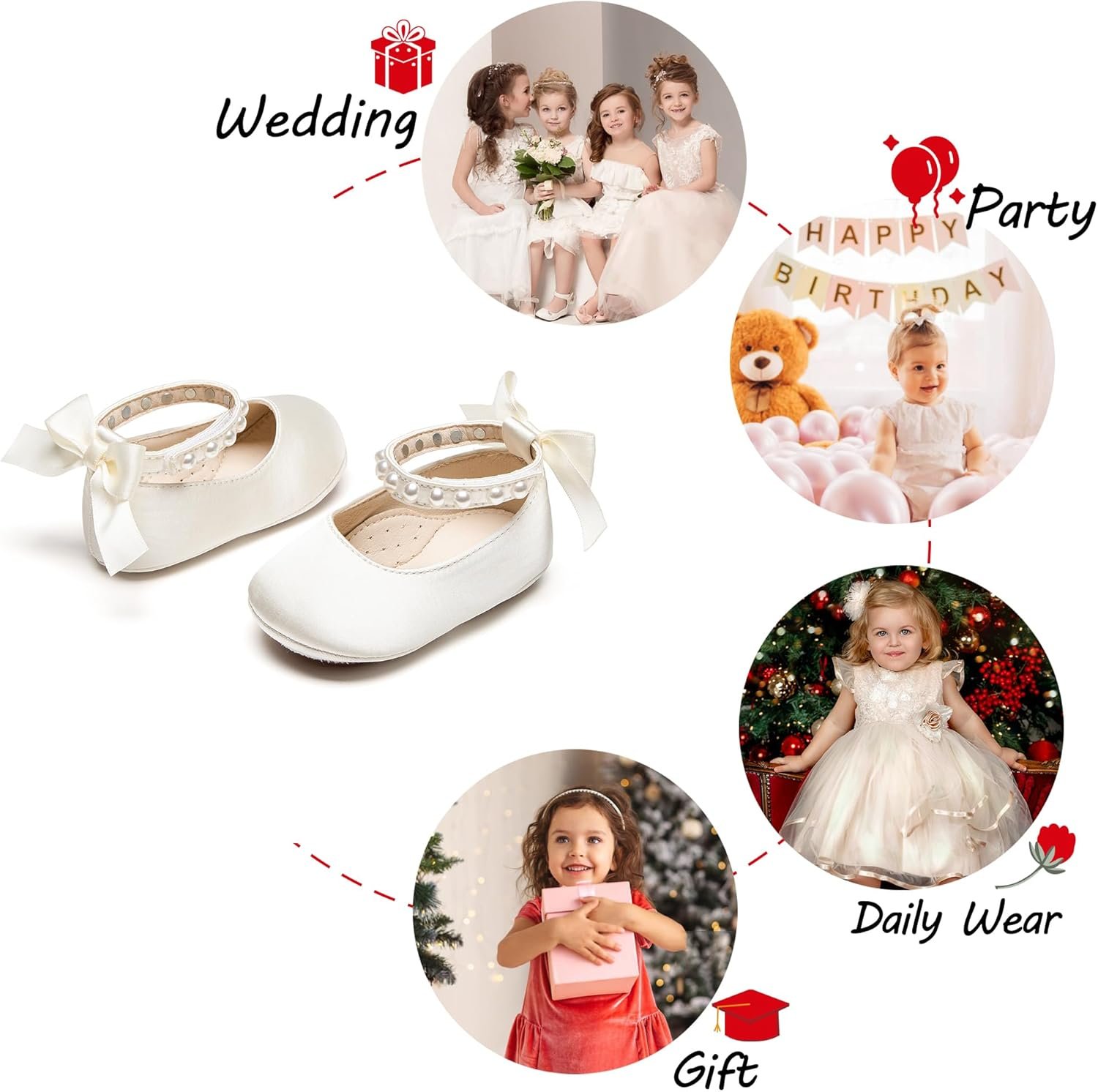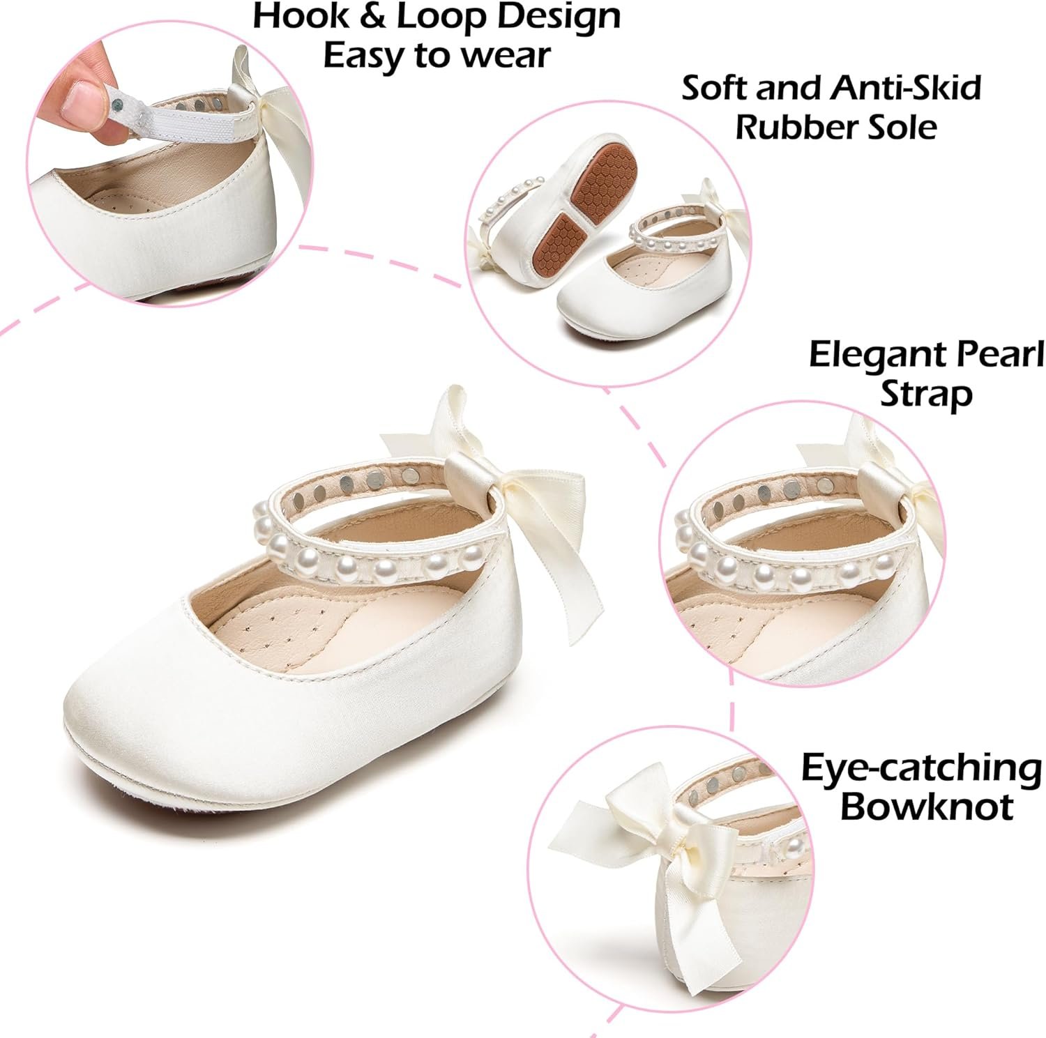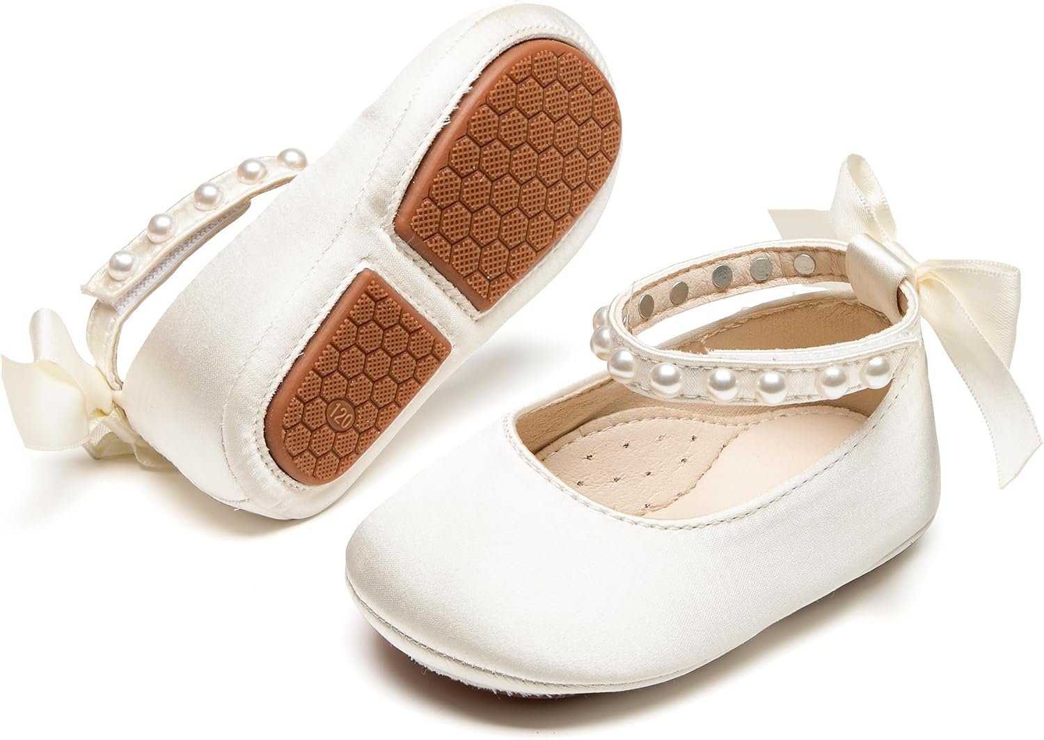 PHIRAMIN Baby Girls Mary Jane Flats – Infant Newborn Walking Shoes Soft Rubber Sole Princess Wedding
