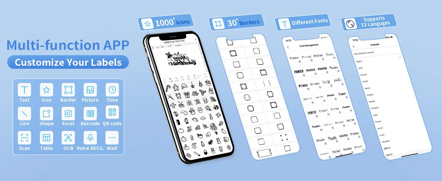 ✨Powerful APP – Phomemo’s R&D team create the Print Master APP for you, with a variety of built-in functions. One-click use: text, pictures, barcodes, QR codes, OCR, Form, hundreds of icons, and many pre-made templates for commercial and home use. Improve your efficiency.