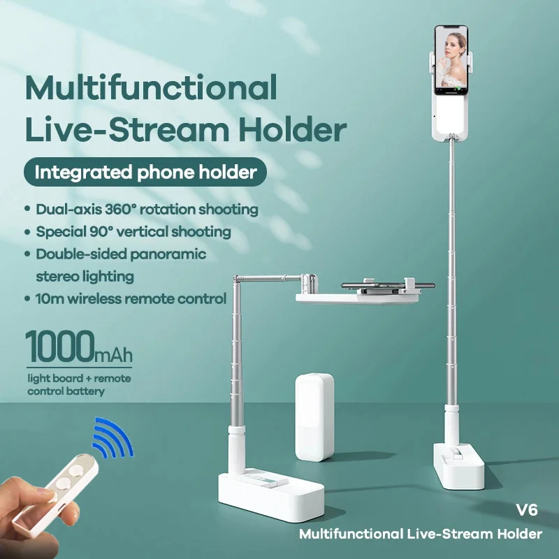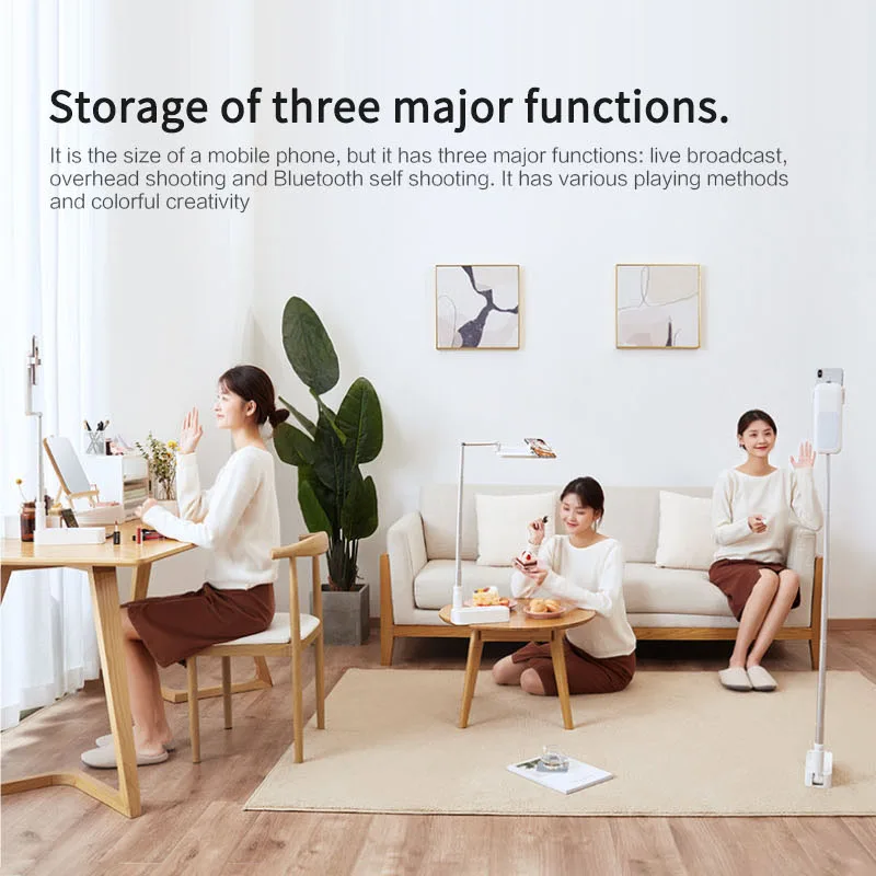 This is a brand-new design multifunctional portable foldable mobile phone holder lamp, with Selfie fill light, tripod, Bluetooth remote control camera and table lamp functions. Foldable and portable design, very suitable for daily photography, chat, and use in dramas.