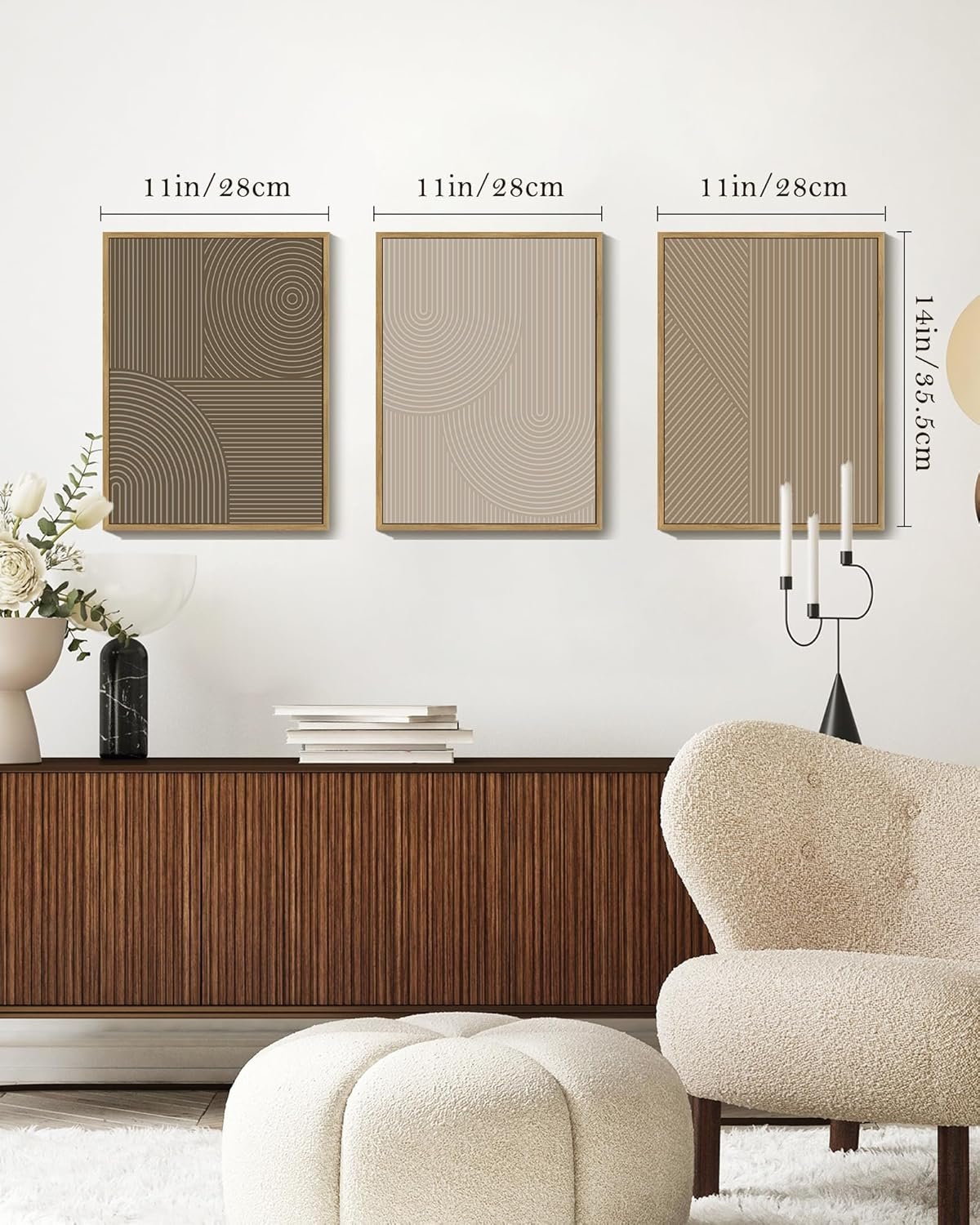 Easy to Hang – Equipped with pre-installed hooks, the chic beige boho wall art is easy to hang and position. Set of 3, each panel is 11″ x 14″.