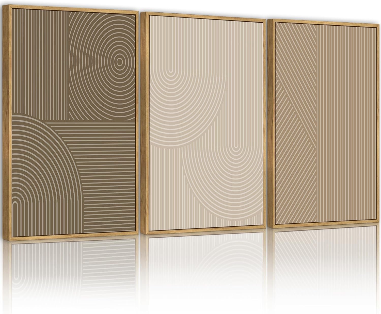 PHOPAGO Minimalist Abstract Framed Wall Art Modern Boho Neutral Line Wall Decor Geometric Artwork Kitchen Dining Room 11x14in Natural Framed